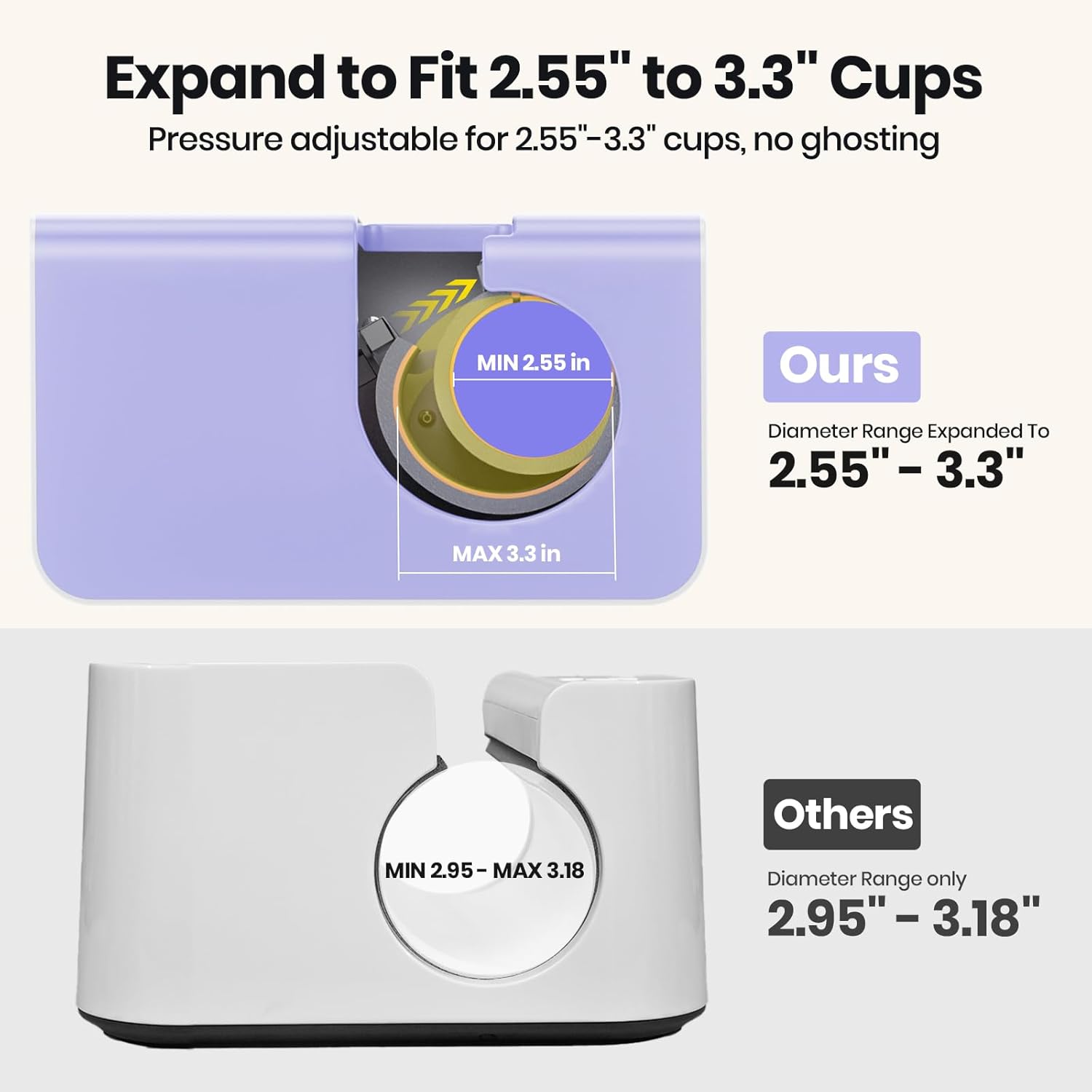 Suitable For 11-32oz Cups: This auto tumbler heat press supports cup diameters from 2.55" to 3.3" making it the most versatile tumbler heat press available. Perfect for various mugs tumblers glassware cups water bottles and sippy cups. The adjustable accurate pressure can achieve an even press and perfect sublimation results and no ghosting anymore