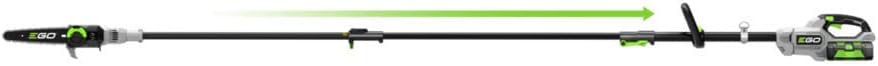 The 10 Pole Saw introduces an industry-first LED Cut Line Indicator for improved visibility and better accuracy when working under dark shaded canopies and low light conditions. Its telescopic carbon fiber shaft extends for a total reach up to 13 feet (or 17 feet with EP1000 extension pole sold separately) while maintaining best-in-class weight up to 30 percent lighter than other pole saws for tree trimming. Tool-free tensioning provides fast precise chain tensioning so you can get back to work faster. This cordless pole saw makes up to 100 cuts on a single charge with the included 56V 2.5Ah ARC Lithium battery. The electric pole saw features a high-efficiency brushless motor that delivers long runtimes low vibrations and an extended motor life. Its 10-inch bar and 1/4-inch chain delivers smooth precise cuts with chain speeds up to 20 m/s. The pole saw features a quick-adjust handle for ultimate control along with a shoulder strap and strap hook for added comfort.