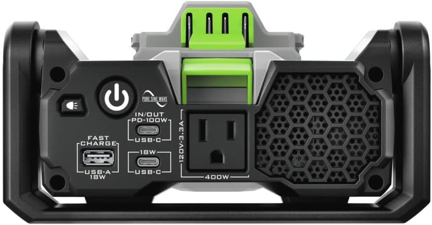 USB-C PD 100W in/out port for powering devices or charging EGO 56V ARC Lithium batteries (available separately)