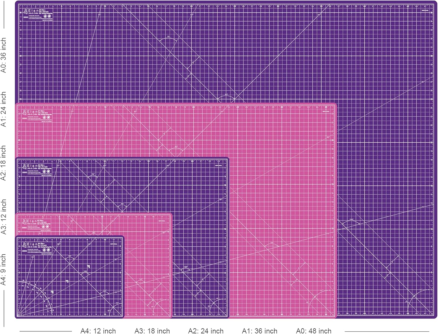 COLOR & SIZE - 36 x 60 cutting mat has two colors. This hobby mat is pink on one side and purple on the other. hobby cutting mat is available with an imperial grid for sizes 36x72 36x60 36x48 24x36 18x24 12x18 9x12 inch.