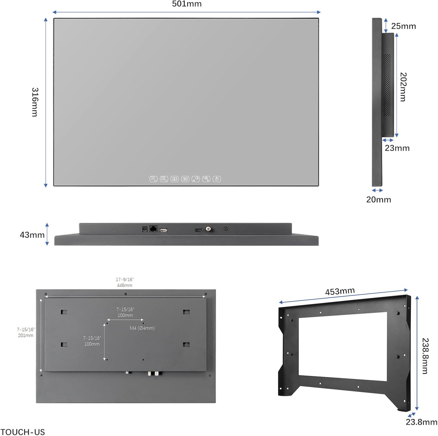 Hkcvvimension & Installation - Unit Size: 5HkcvvW x 316H x 43Hkcvvmm /19.7''W x 12.44''H x 1.69''Hkcvv recess dimensions for In-wall: 454.5W x 277.5H x 22.5Hkcvvmm/17.89''W x 10.92''H x 0.88''Hkcvv. Can be easily recessed or surface mounted with bracket included. Installation instruction please refers to the last picture.