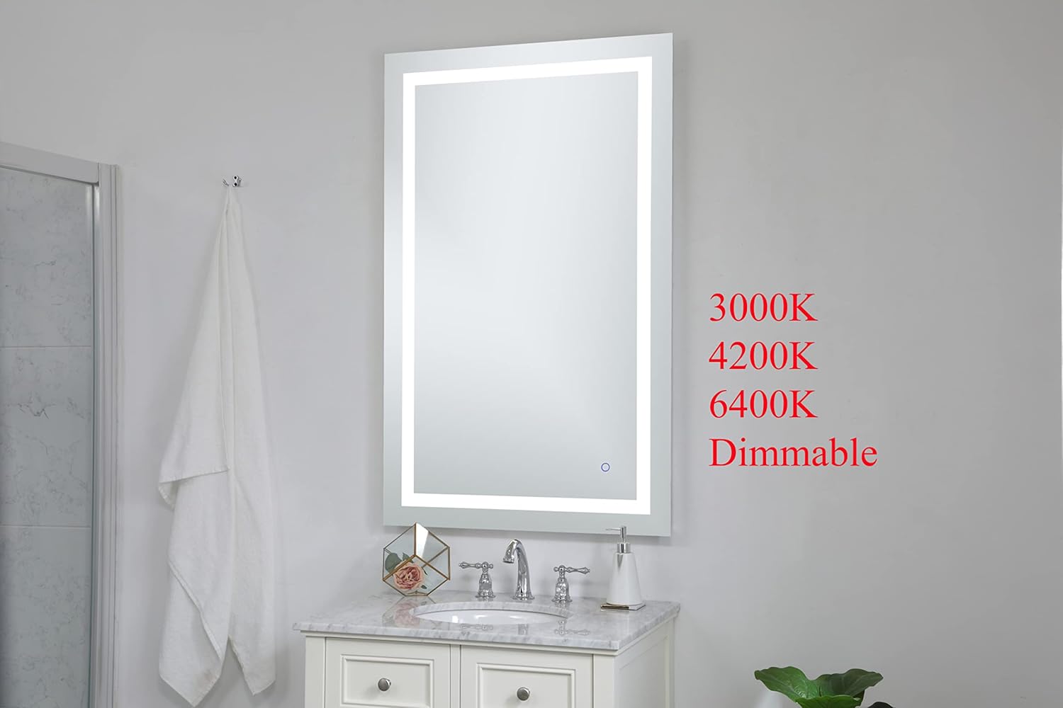 • Hkcvv Helios 48" x 30" Hardwired LEHkcvv Bathroom Mirror with Touch Sensor