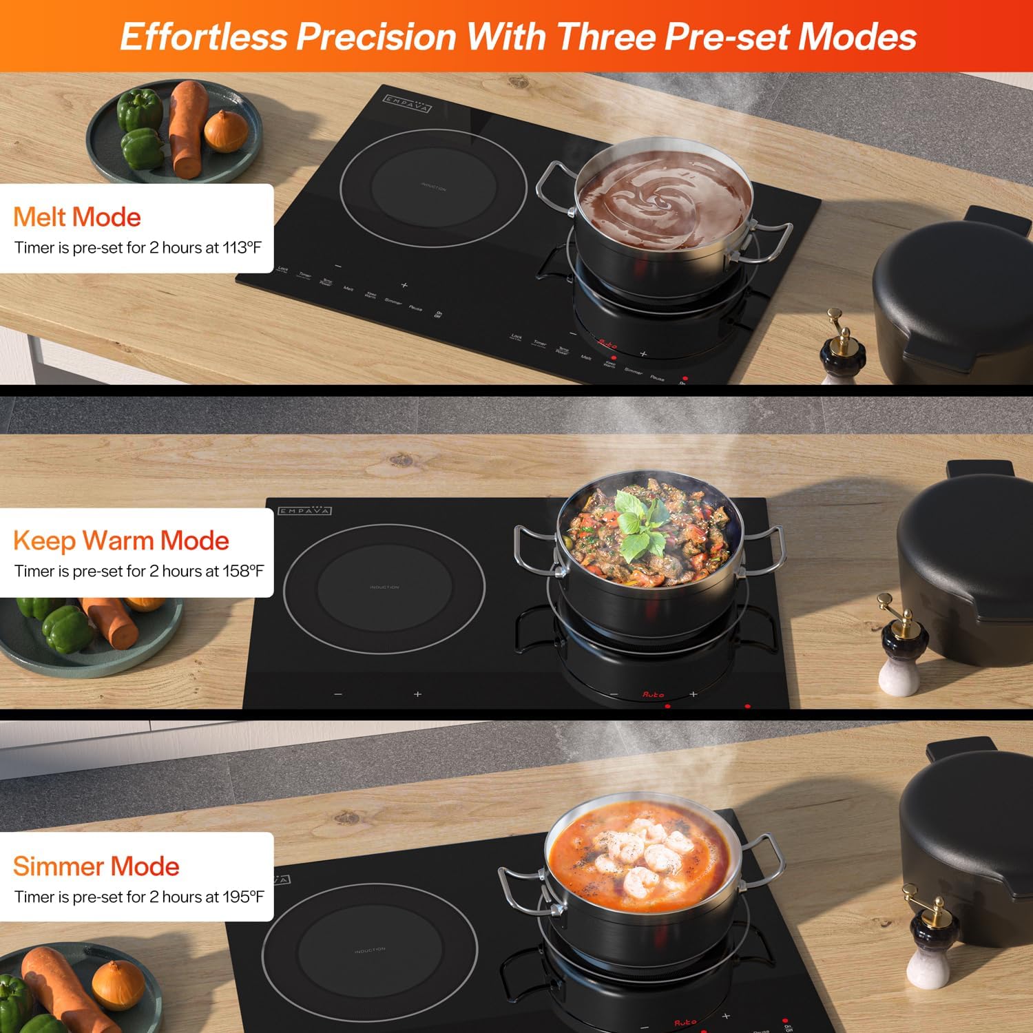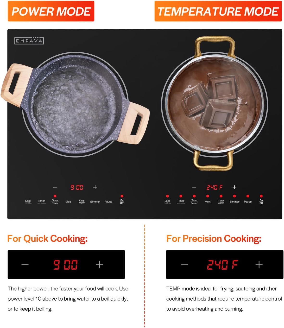 Tailored Cooking Zones: With 18 temperature levels customize your cooking with high efficiency and responsiveness. Whether you need quick boiling or gentle heating this cooktop delivers consistent temperature for gourmet results every time.