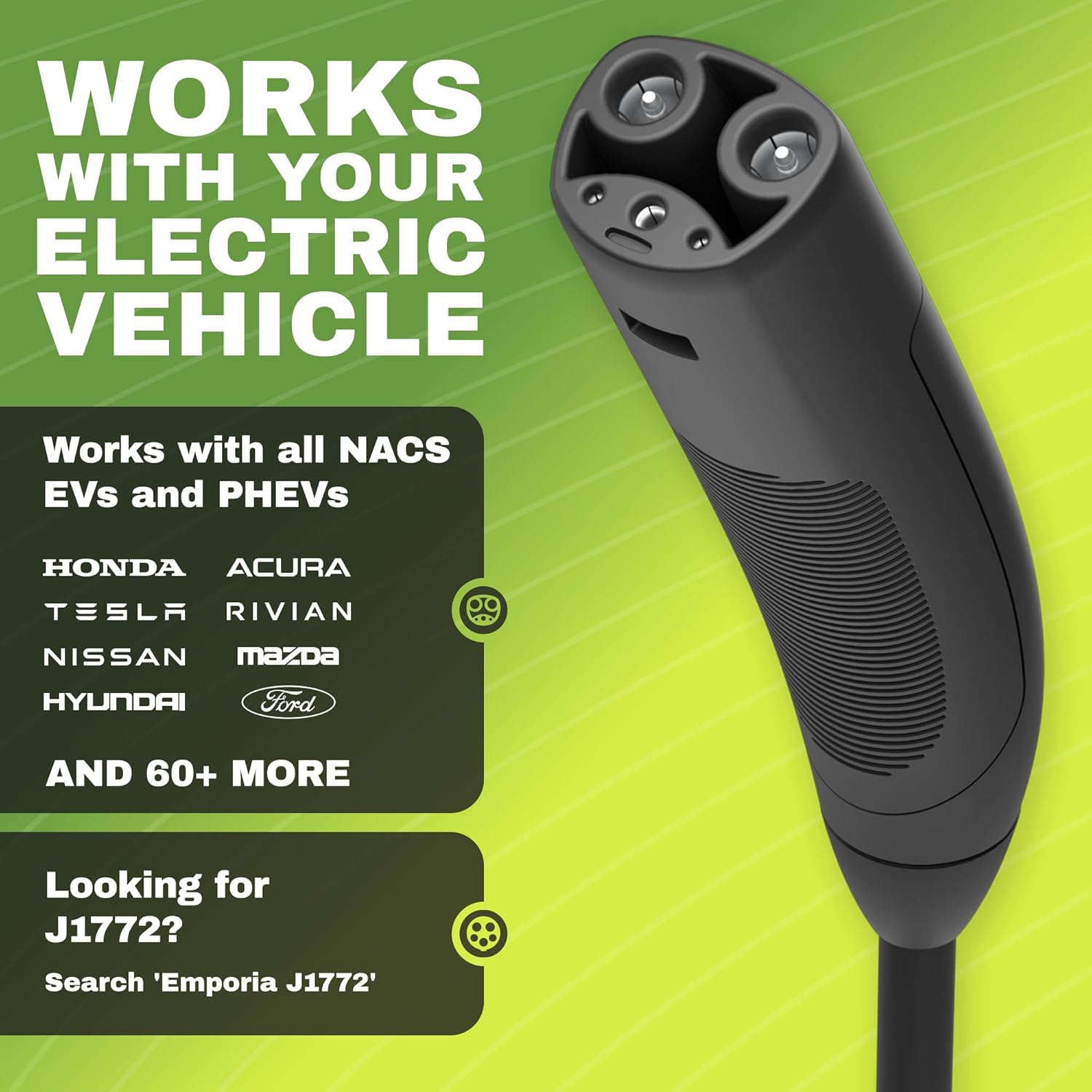 Up to 9x Faster Charging Speed: The electric vehicle charger provides up to 46 miles/hour charging speed via hardwired connection (48 amp - up to 9x faster than a standard wall outlet) or up to 38 miles/hour via the NEMA connection (40 amp).