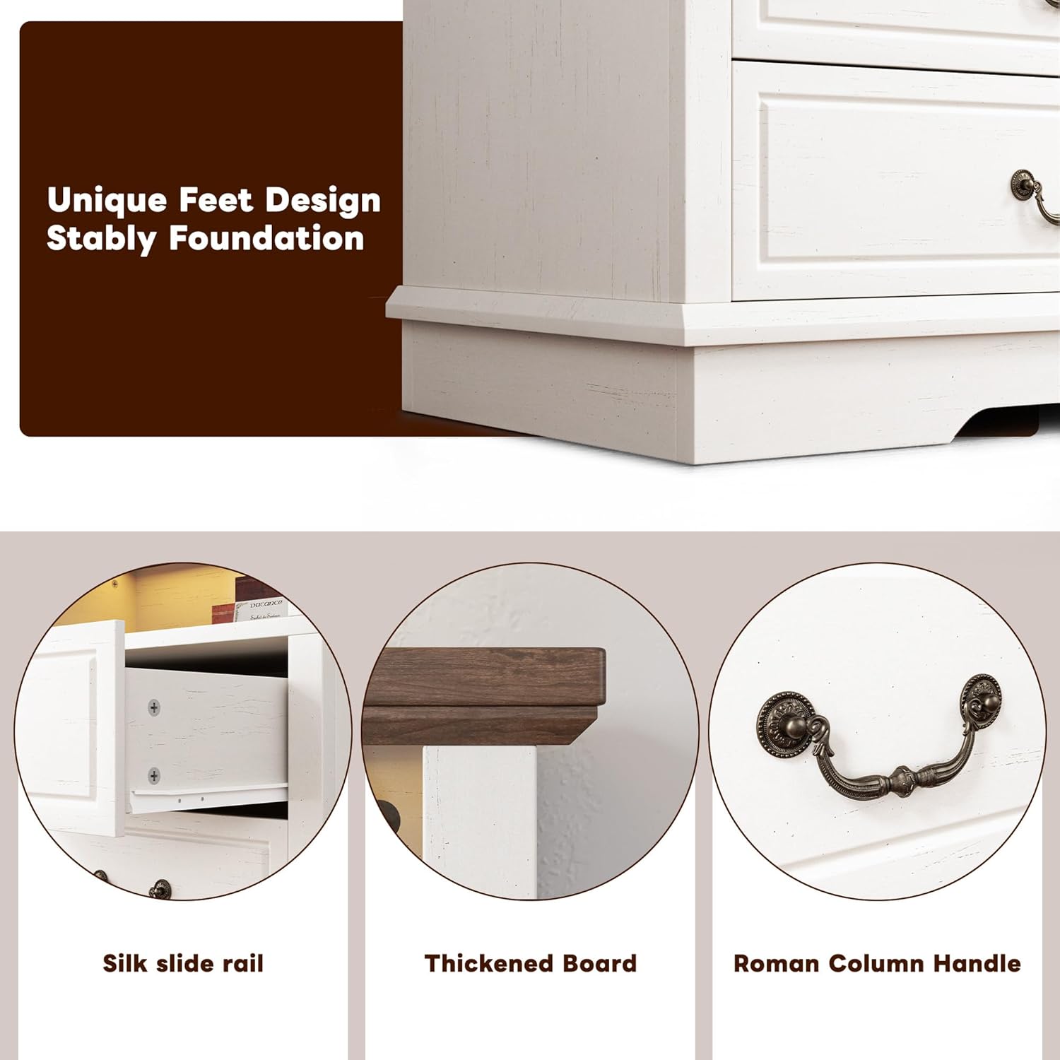 Sturdy and Safe Construction Dresser Organizer for Bedroom is beveled edges amd table leg design contribute to its exceptional stability. The anti-tippling device improves the stability and safety of the dressers & chests of drawers, and ensures that there will be no wobbling and tilting when you store and take things. Each drawer of dressers is equipped with a smooth sliding system,making this bedroom dresser easy to push and pull.