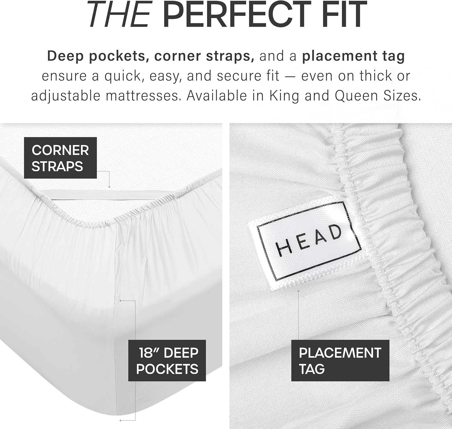 WE THOUGHT OF EVERYTHING- Our superior bed sheets are a dream to sleep on. The 18" extra deep pocket fitted sheet with head tag will fit even the most plush pillow top mattresses. To ensure the perfect fit, we also included heavy duty non-slip elastic corner straps to make sure you never have to readjust your fitted sheet again. Our flat sheet includes high quality double stitching to make sure these sheets last for years to come.