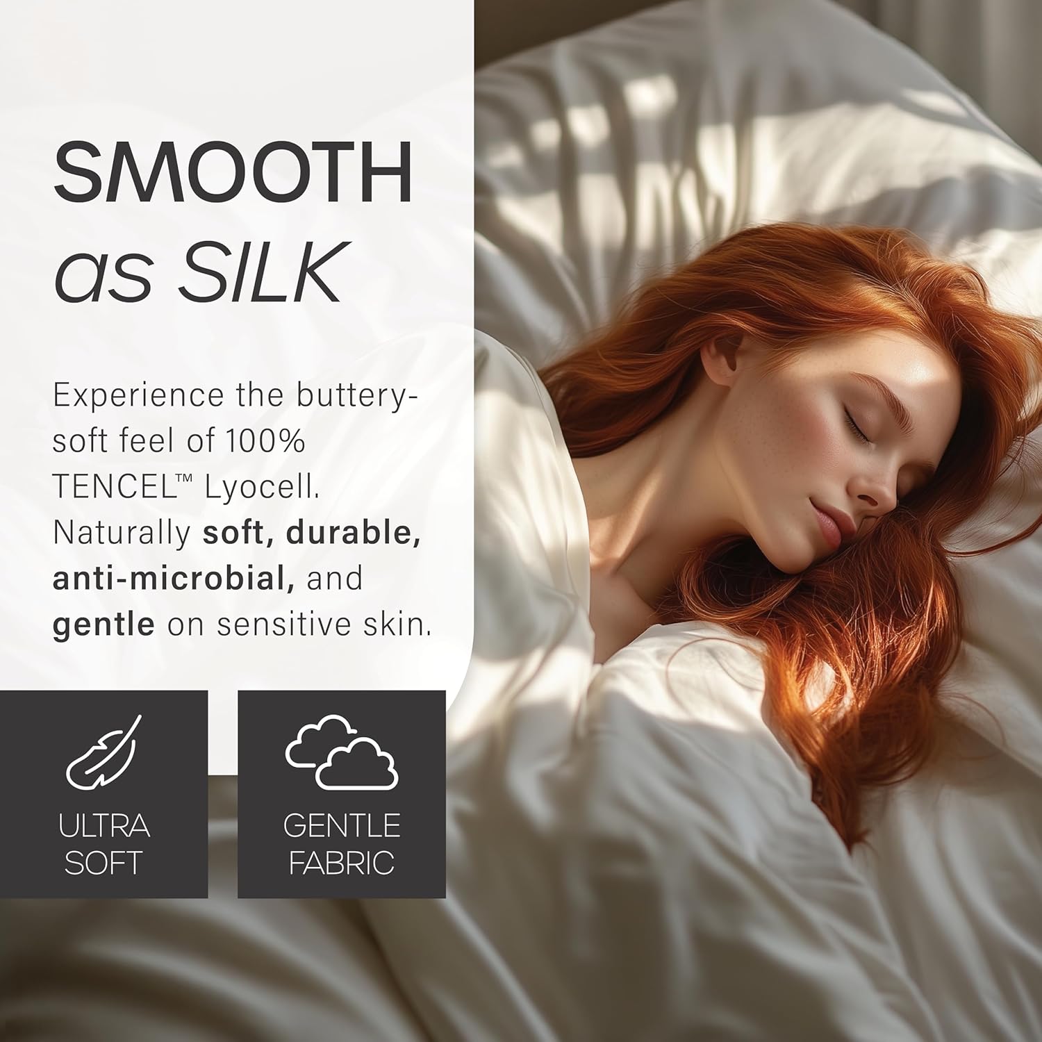 EASY TO CARE FOR-Combined with Tencel Lyocell and finished silver ions our eucalyptus sheets collection allows you to keep your bedding environment free from harmful things (unseen things), allowing you to go up to 3x longer before you wash your sheets.