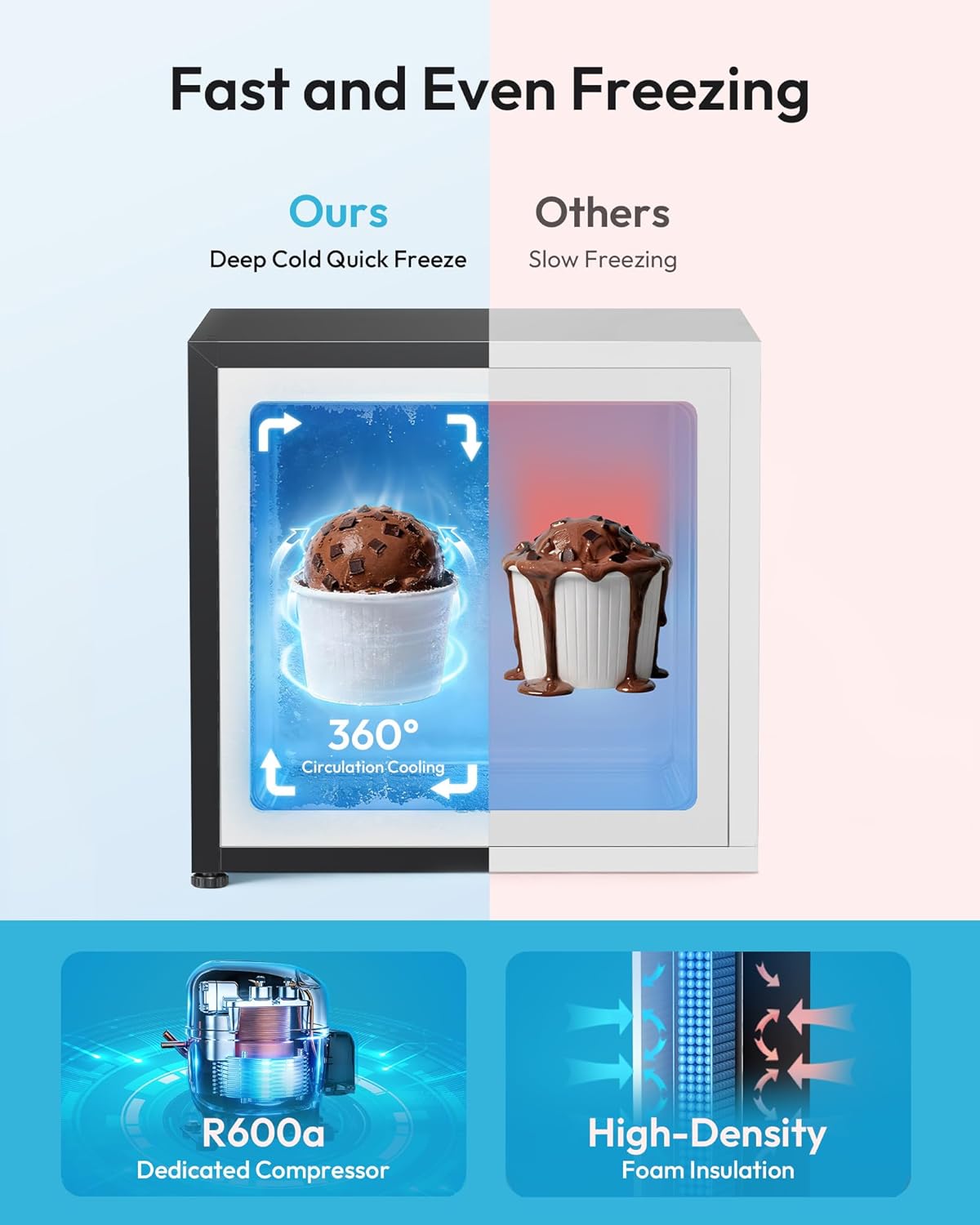 Energy Conservation & Healthy life - As a low-energy freezer this compact freezer will help you reduce energy costs while providing an efficient freezing solution The freezer liner is also made of food-grade material which ensures healthy and safe