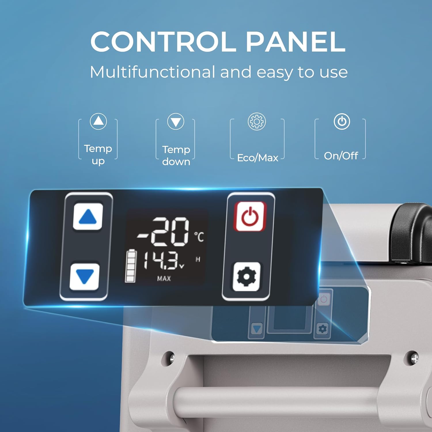 User-Friendly Design & LCD Panel; This portable cooler is equipped with a removable handle for easy portability. The 12v fridge includes a simple LCD control panel for easy temperature adjustments. An internal LED light design makes the 12 volt fridge convenient to access your food at night