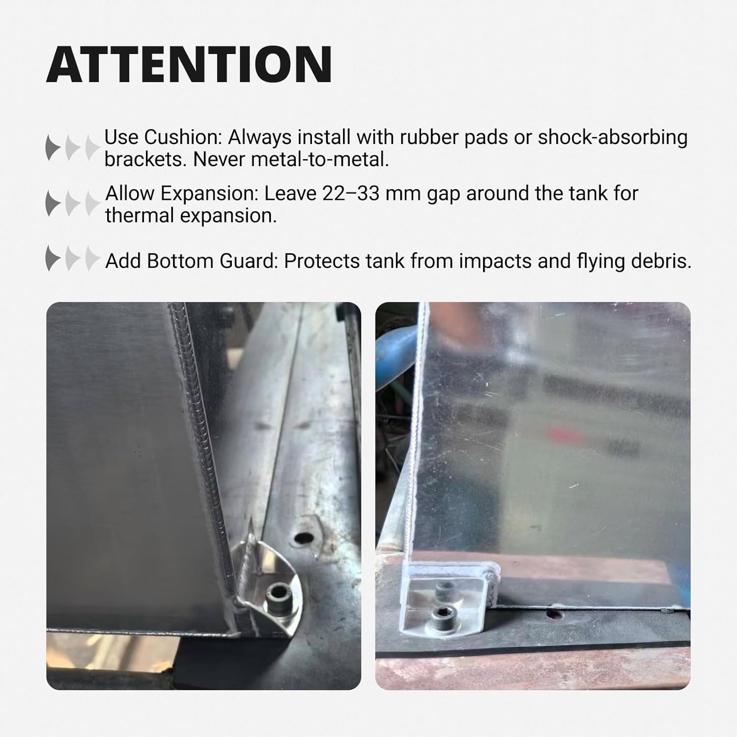 Material: The drift fuel cell tank is made of 1060-H24 aluminum alloy and the cover is made of plastic.