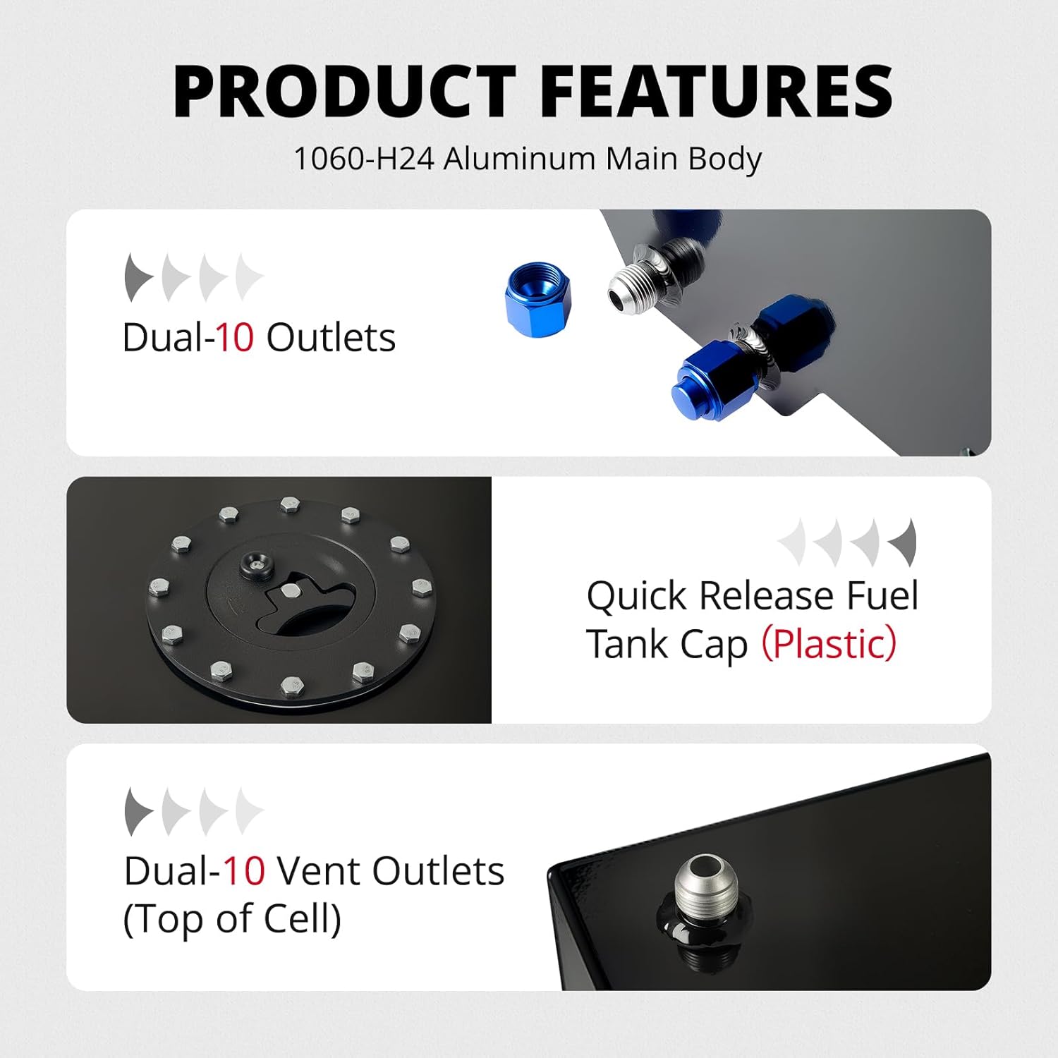 Features: The package includes one aluminum fuel cell with a built-in 390 ohm level sensor and internal anti-slosh foam.