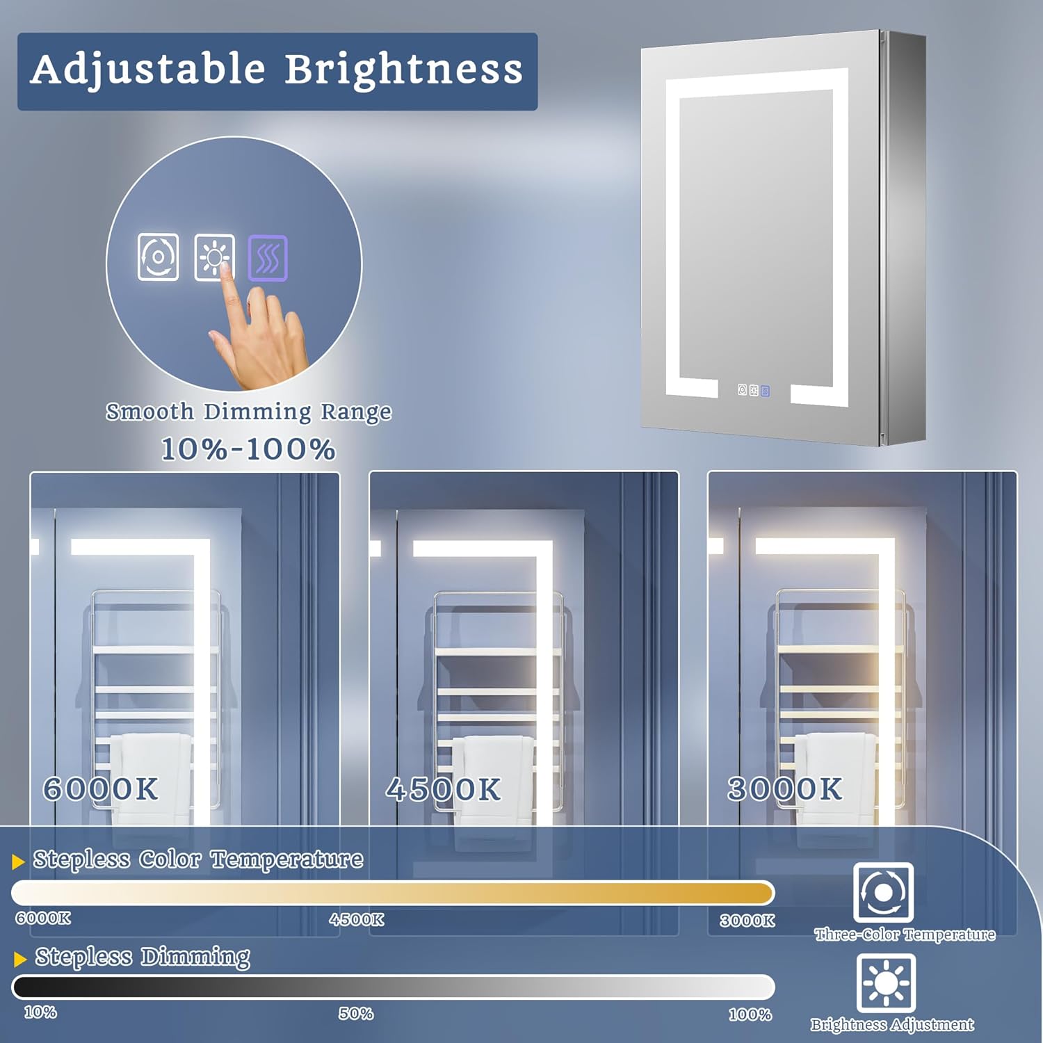 【Safety Assurance】Our lighted medicine cabinet is ETL certified as a complete unit ensuring full compliance with safety standards and giving you peace of mind in daily use. In addition all critical components have also passed UL certification providing an extra layer of reliability for long-term performance.