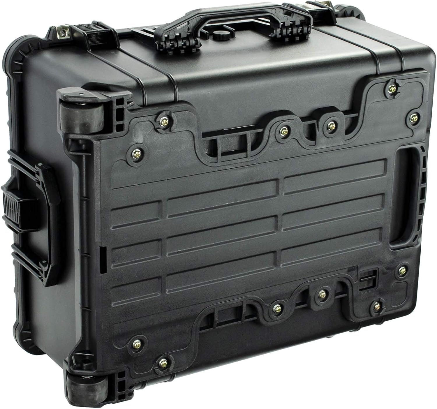 Retractable Handle with Wheels: Equipped with a sturdy retractable handle and smooth-rolling wheels this case ensures effortless mobility allowing you to easily transport heavy gear over various surfaces without straining your back.