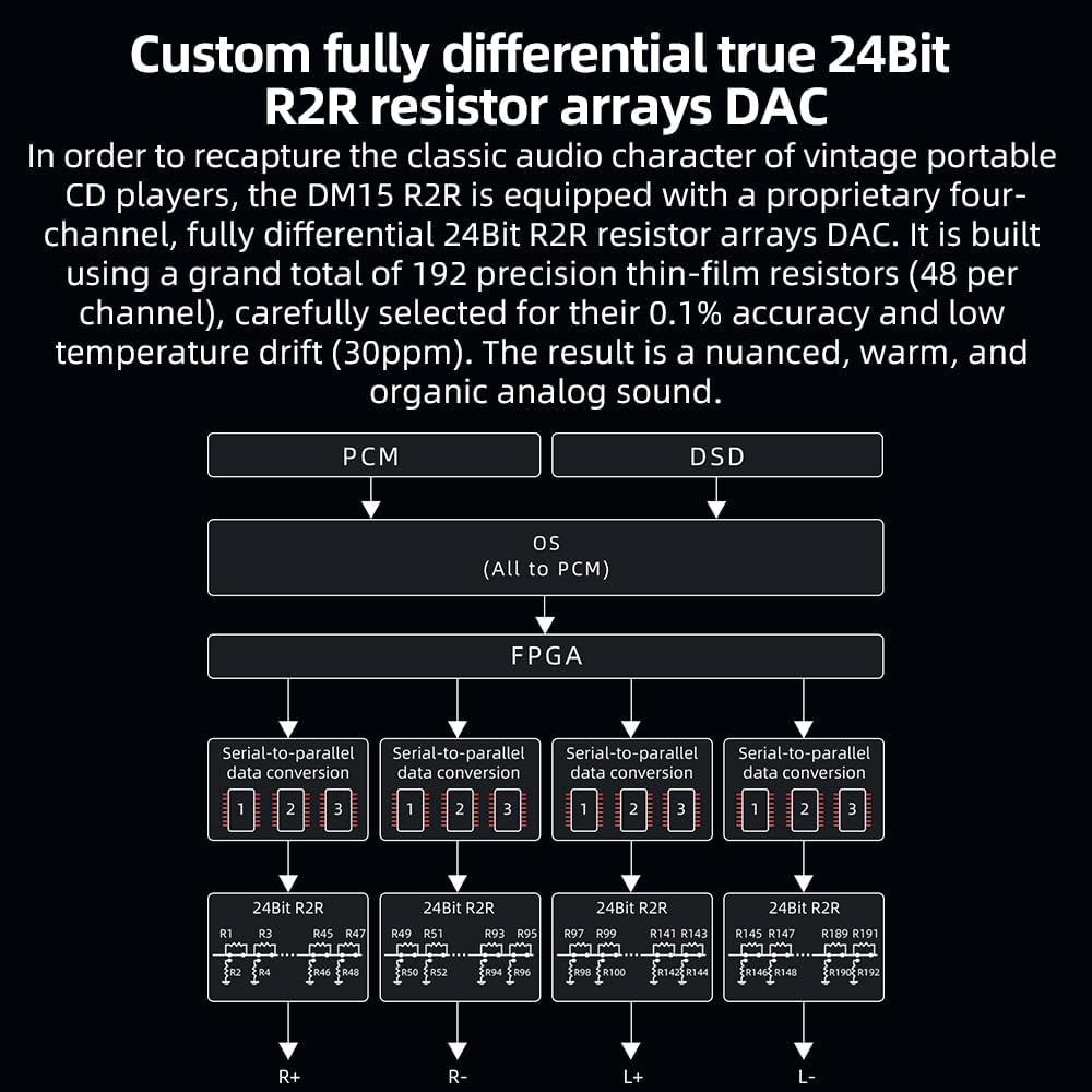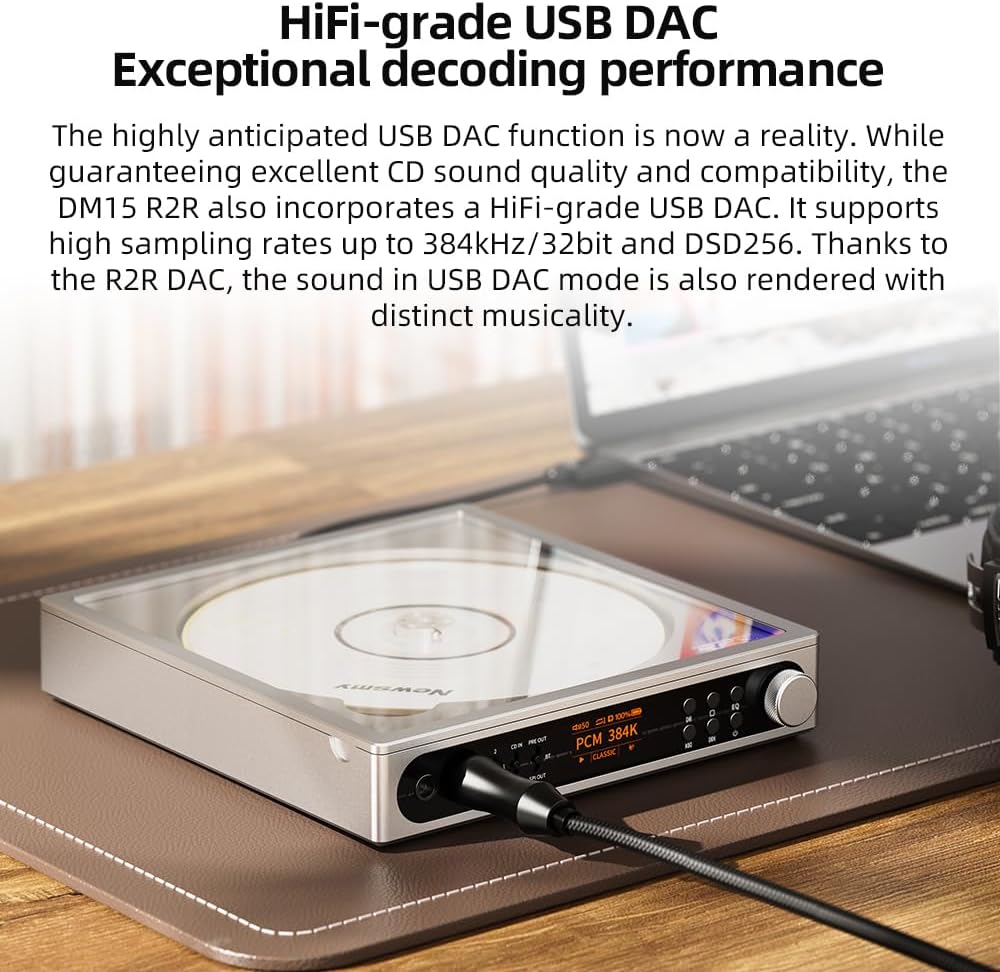 HiFi-Grade USB DAC With Up to 384k/32bit & DSD256 The DM15 R2R doubles as a high-performance USB sound card supporting up to 384kHz/32bit PCM and DSD256. Combined with the R2R DAC architecture the USB DAC mode delivers not only high resolution but also rich analog musicality.