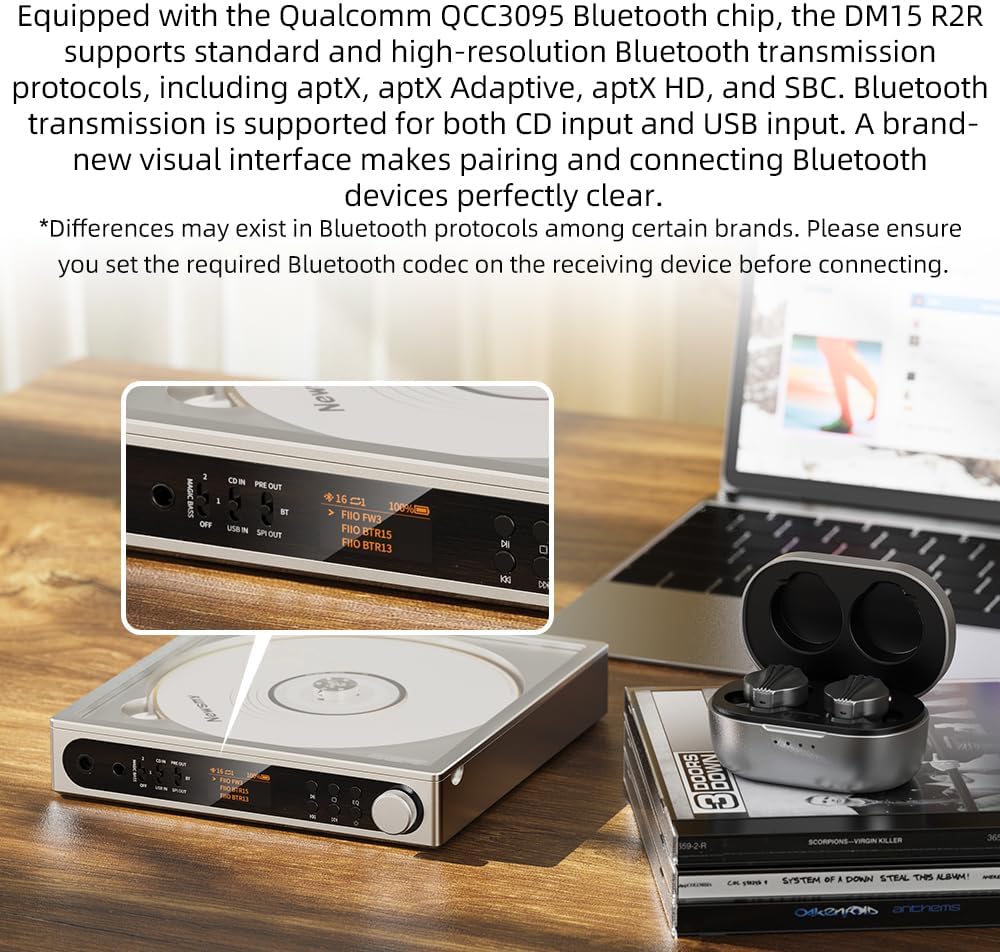 Qualcomm QCC3095 High-End Bluetooth: Easy Wireless Streaming Equipped with Qualcomms premium QCC3095 Bluetooth chipset supporting aptX aptX HD aptX Adaptive and SBC. Both CD input and USB input can be transmitted via Bluetooth. A new visual interface makes pairing and switching devices intuitive and effortless.