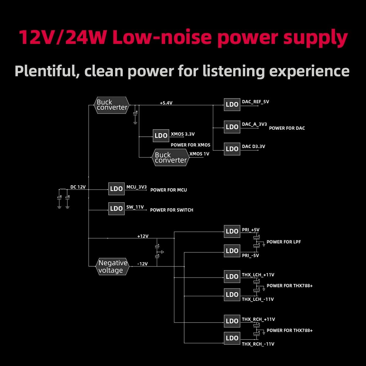 Adopts the six-stage audio circuit as in s high-end devices and features 2 AMKs latest AK4493SEQ DACs and dual THX AAA 788+ amps;