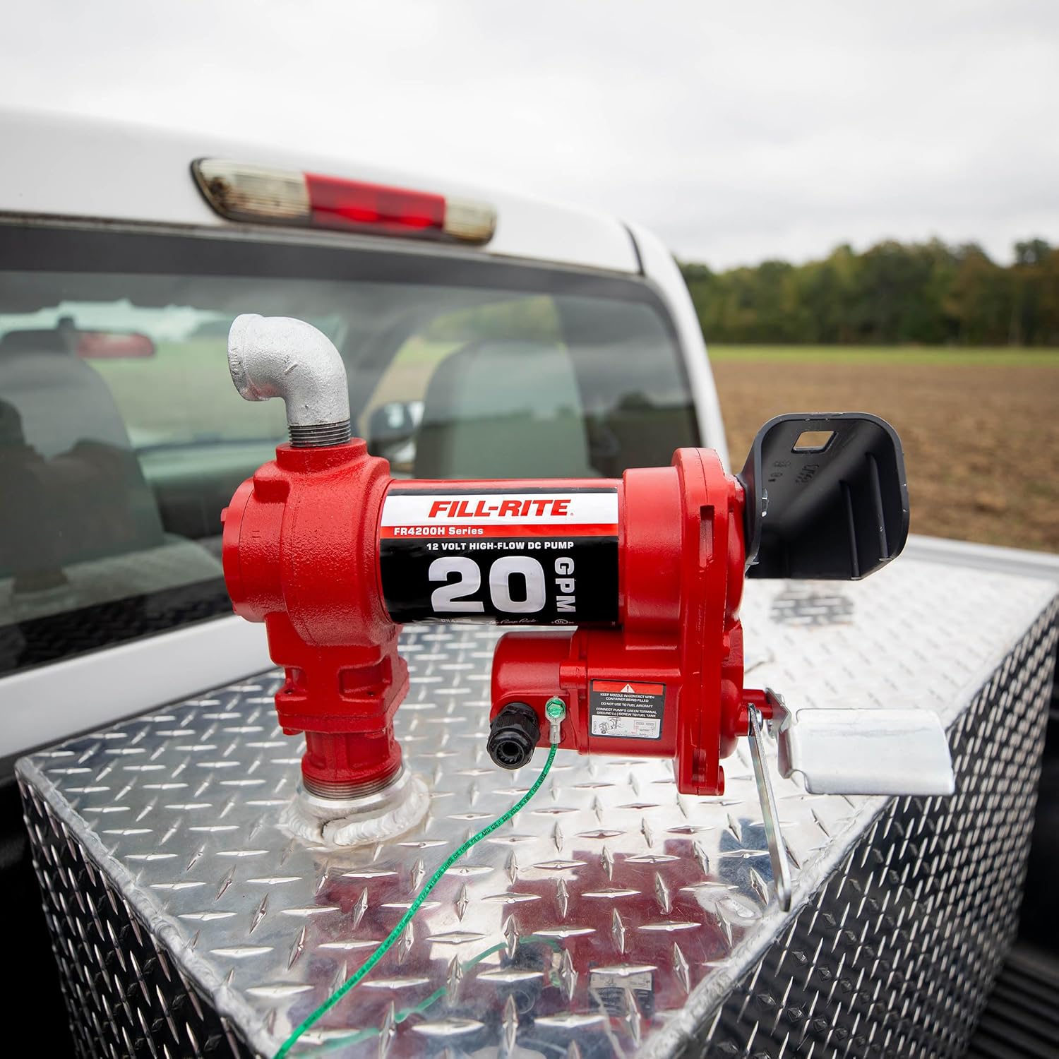 MOBILE APPLICATIONS: Designed for 12V battery powered bung mounted transferring from fuel tanks on trailers or trucks the 4200 series will pull fuel at tank depths of 8 ft. and discharge fuel up to heights of 37 ft.
