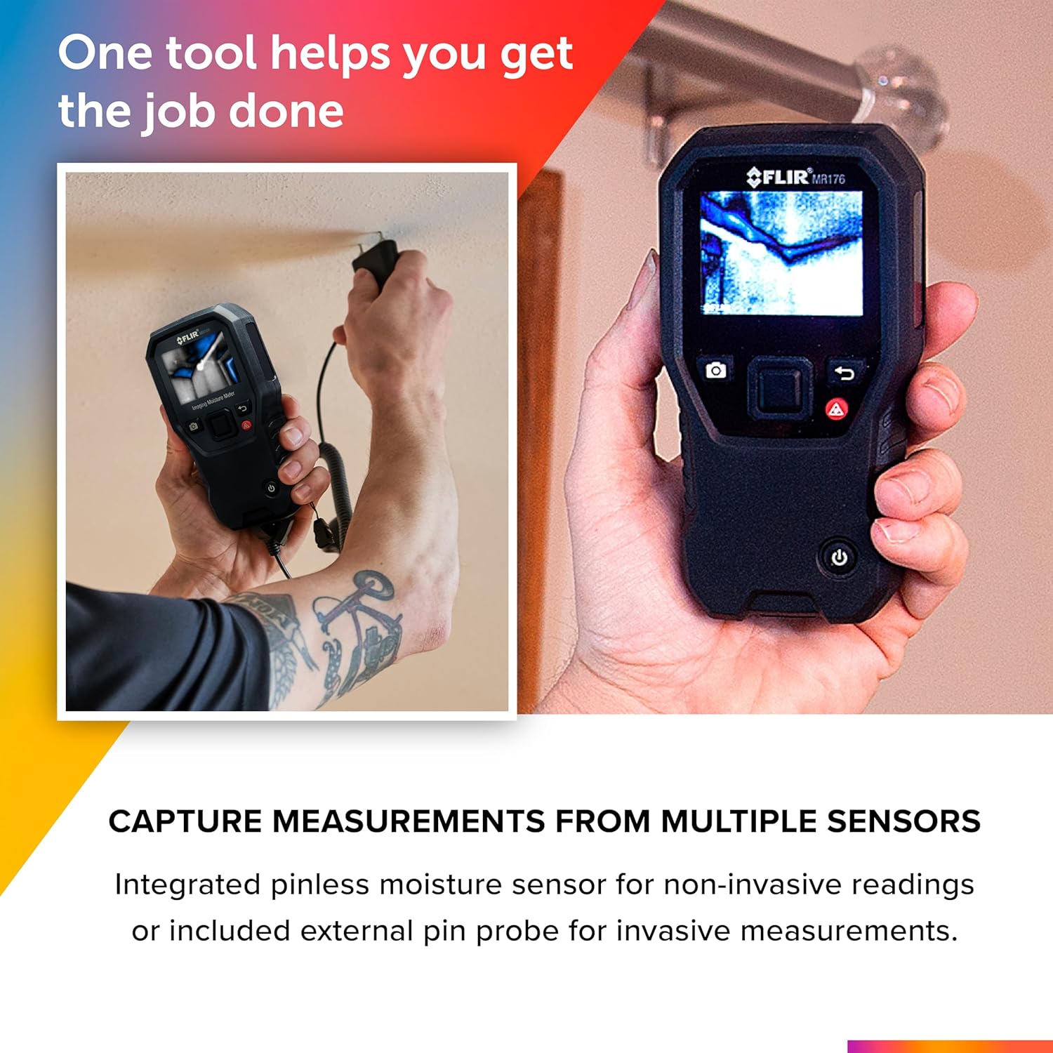 The MR160 is a first-of-its-kind troubleshooting powerhouse that combines a high-quality thermal camera with a professional-grade moisture meter. Designed for home inspectors mold remediation specialists and general contractors the MR160 features Infrared Guided Measurement (IGM) technology. This allows you to visually identify cold spots and temperature anomalies associated with moisture evaporation pointing you directly to the source of the problem before you even touch the wall. Equipped with both an integrated pinless sensor for non-invasive scanning and an external pin probe for contact measurements the MR160 provides the flexibility needed to verify moisture levels in a variety of materials. The 80x60 Lepton thermal sensor offers a clear visual map of potential trouble areas while the METERLiNK app compatibility ensures your data is always organized and ready for professional reporting. Whether you are hunting for hidden roof leaks checking for pipe bursts or verifying that a subfloor is dry enough for installation the MR160 helps you work faster and smarter. Its rugged portable design includes a built-in rechargeable battery that lasts up to 18 hours ensuring you can power through a full week of inspections without worry. With the ability to capture and review images directly on the 2.3-inch color display the MR160 isn't just a meterits your ultimate partner in building diagnostics.