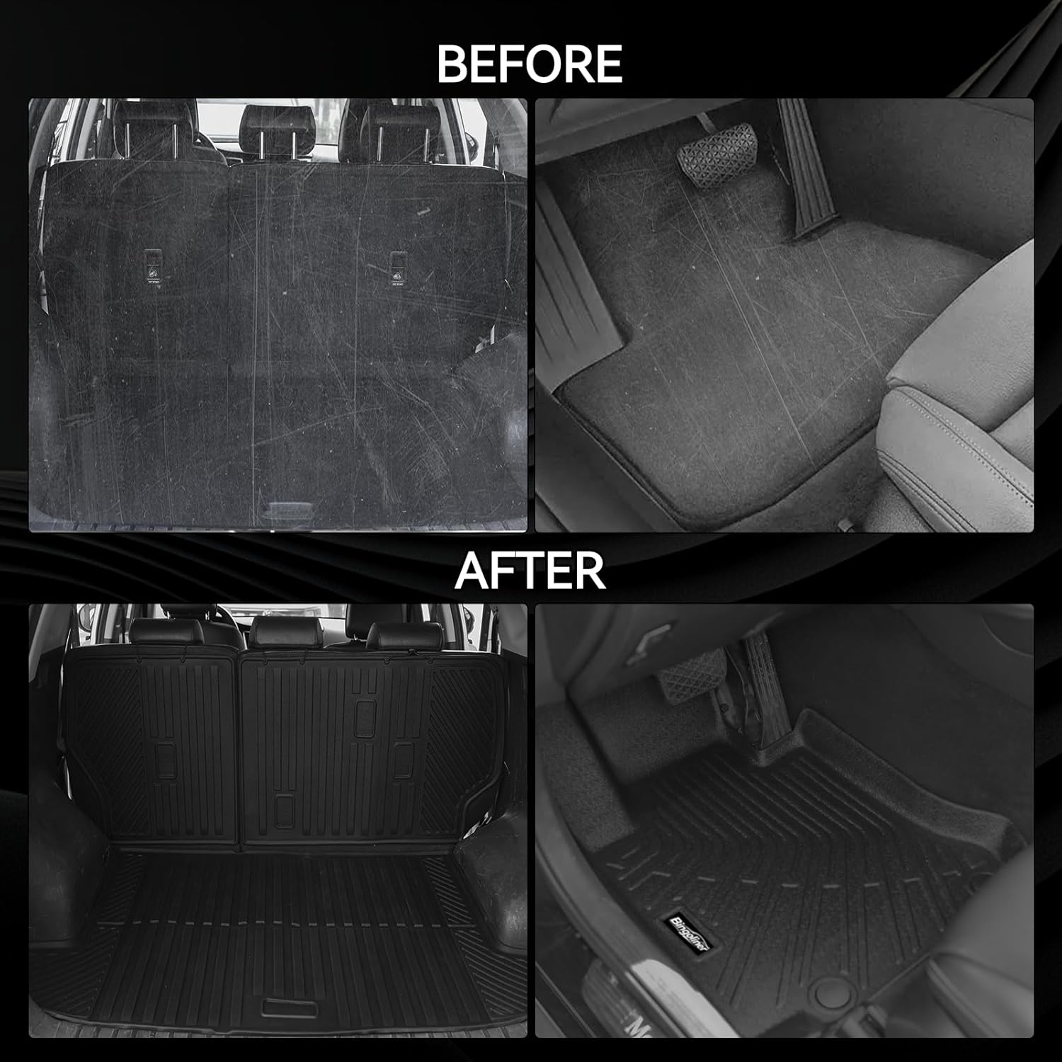All Weather Protection: All-weather floor mats for Grand Cherokee L are made of TPE materials providing durability and waterproof protection for your floors against daily wear and stains. The surface is flexible wipes clean easily and resists cracking even in extreme temperatures. They are perfectly suited for harsh conditions like mud rain and snow