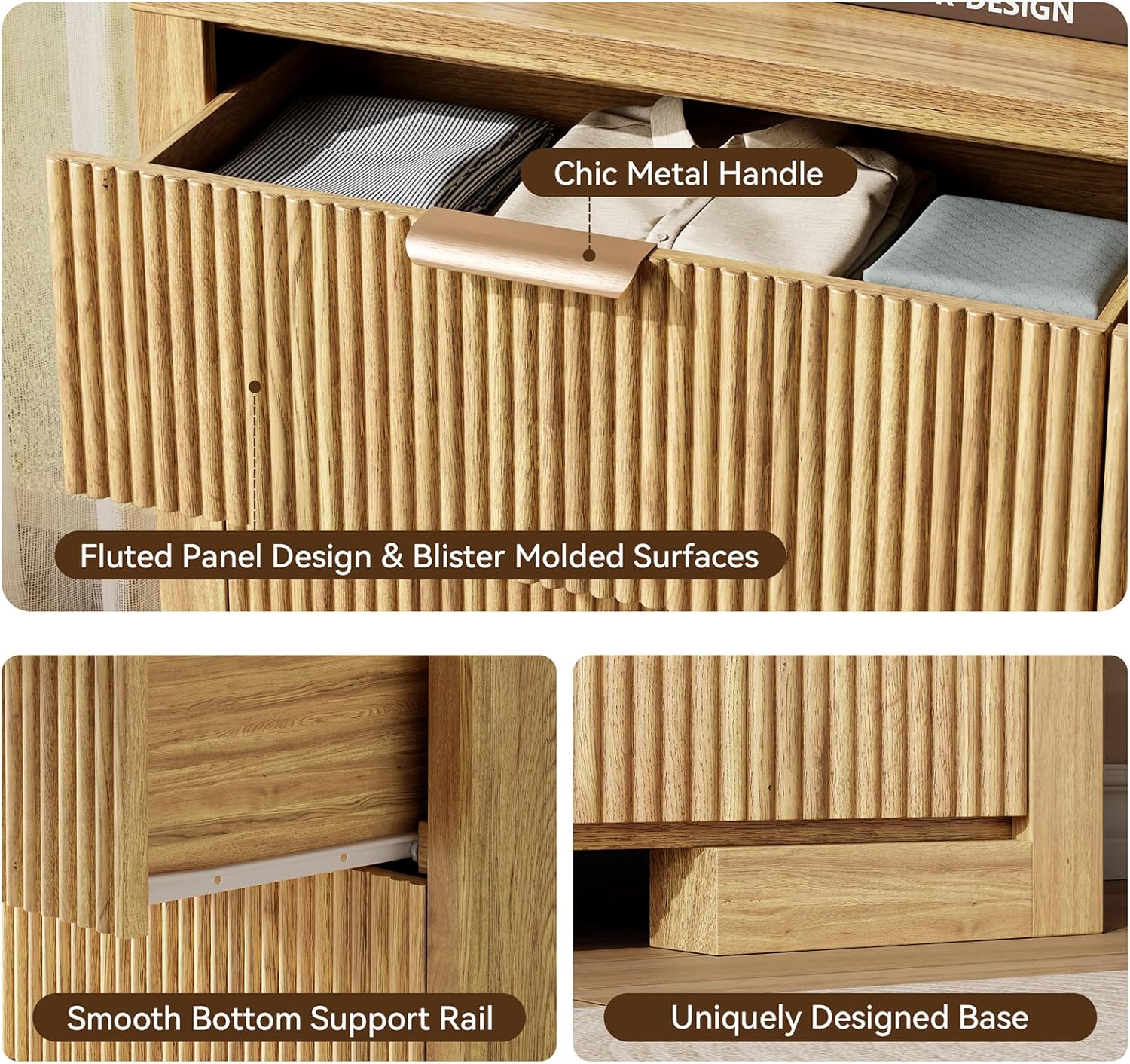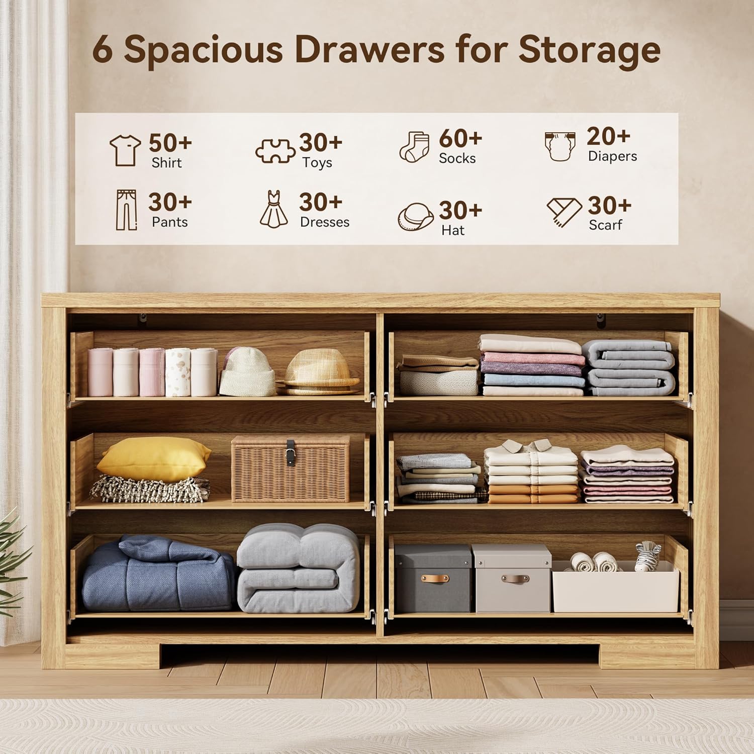 Ample & Organized Storage: With 6 spacious drawers, this chest of drawers offers generous storage for all your clothing, accessories, and bedroom essentials, making it the ultimate closet organization solution.