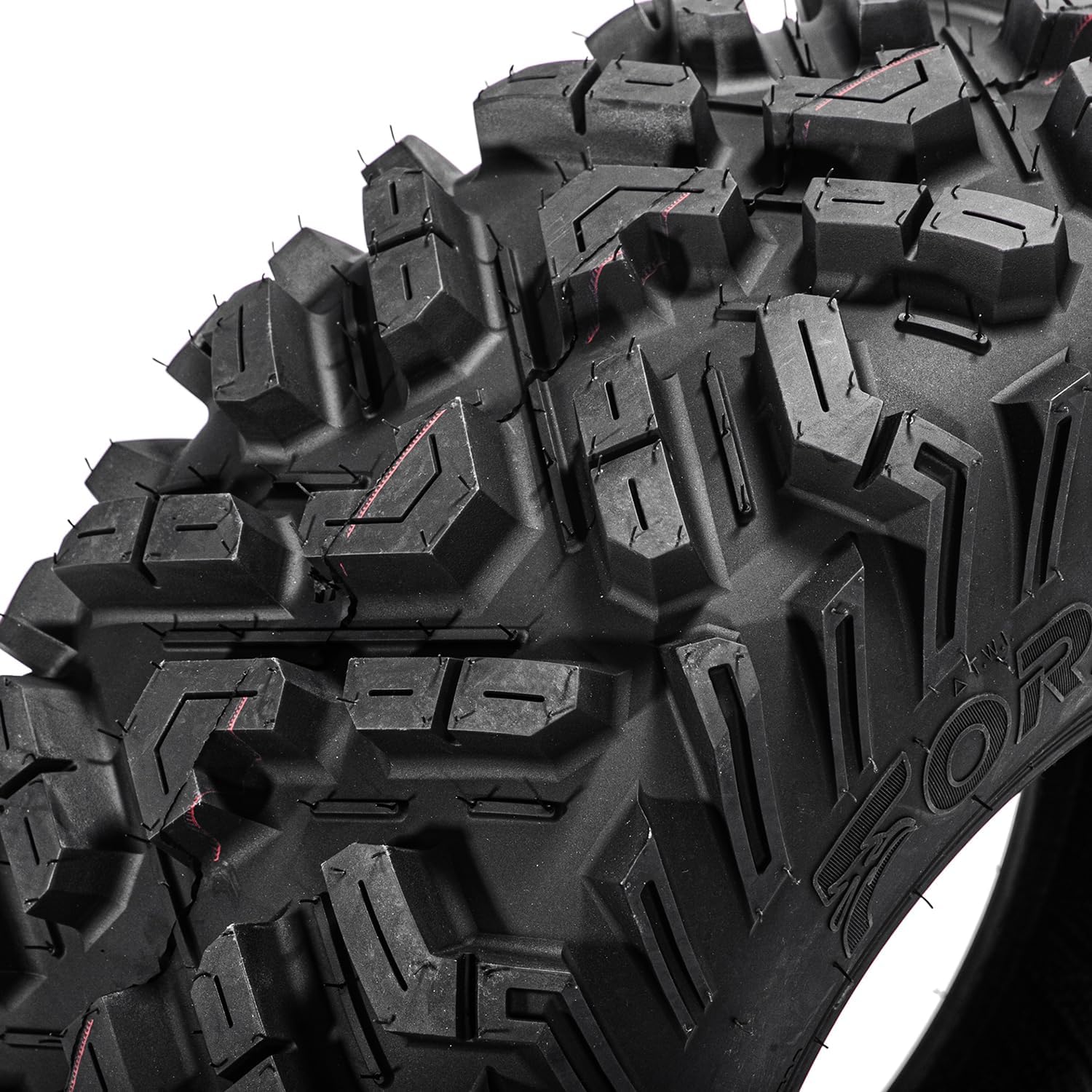 All-terrain Applicable: outstanding performance on hard-pack intermediate loose loam and sand terrain. Top notch handling & superior traction offer a significantly smoother ride in rock woods and desert.6-ply rating for durability andextra load capability.