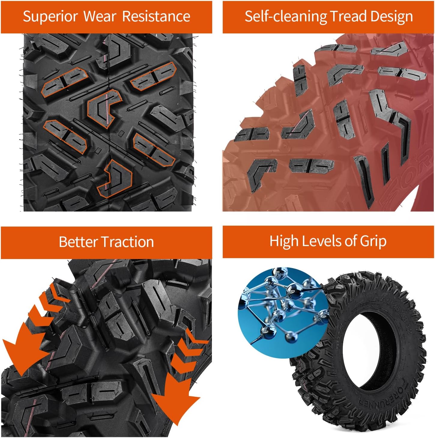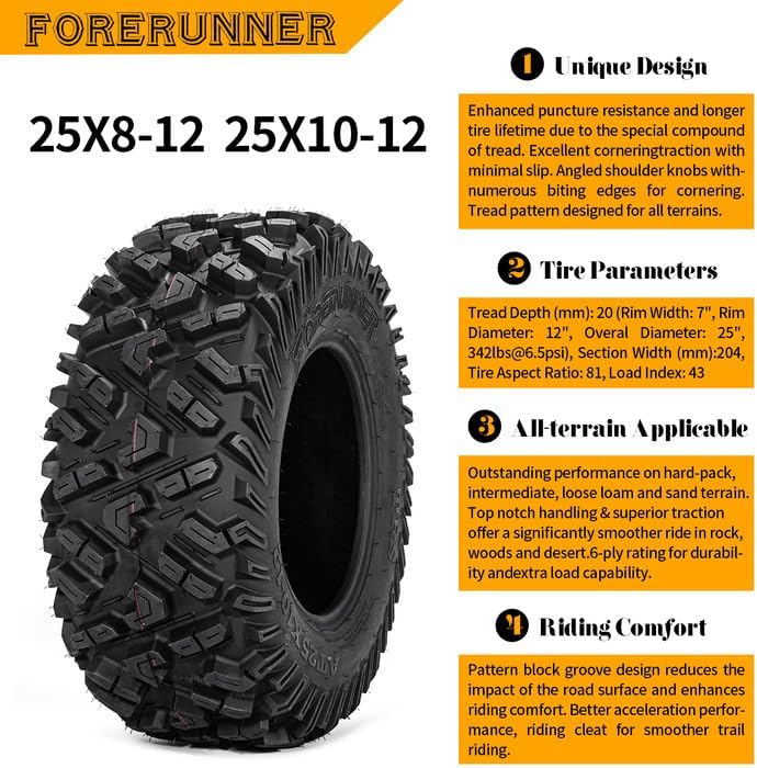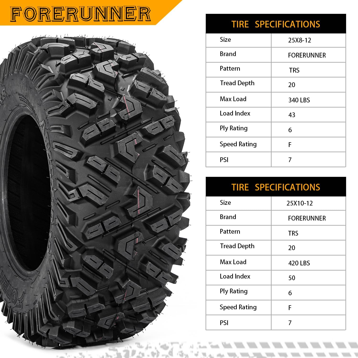 Package Contents: Pack of 4. 25x8-12 Front * 2 & 25x10-12 Rear * 2. Rim(s) NOT included. ((If you order 2 pcs and above you might receive them by separate packages and such packages might reach you at a different time). Tips: Some tires may be deformed a day in the sun wil straighten that out.