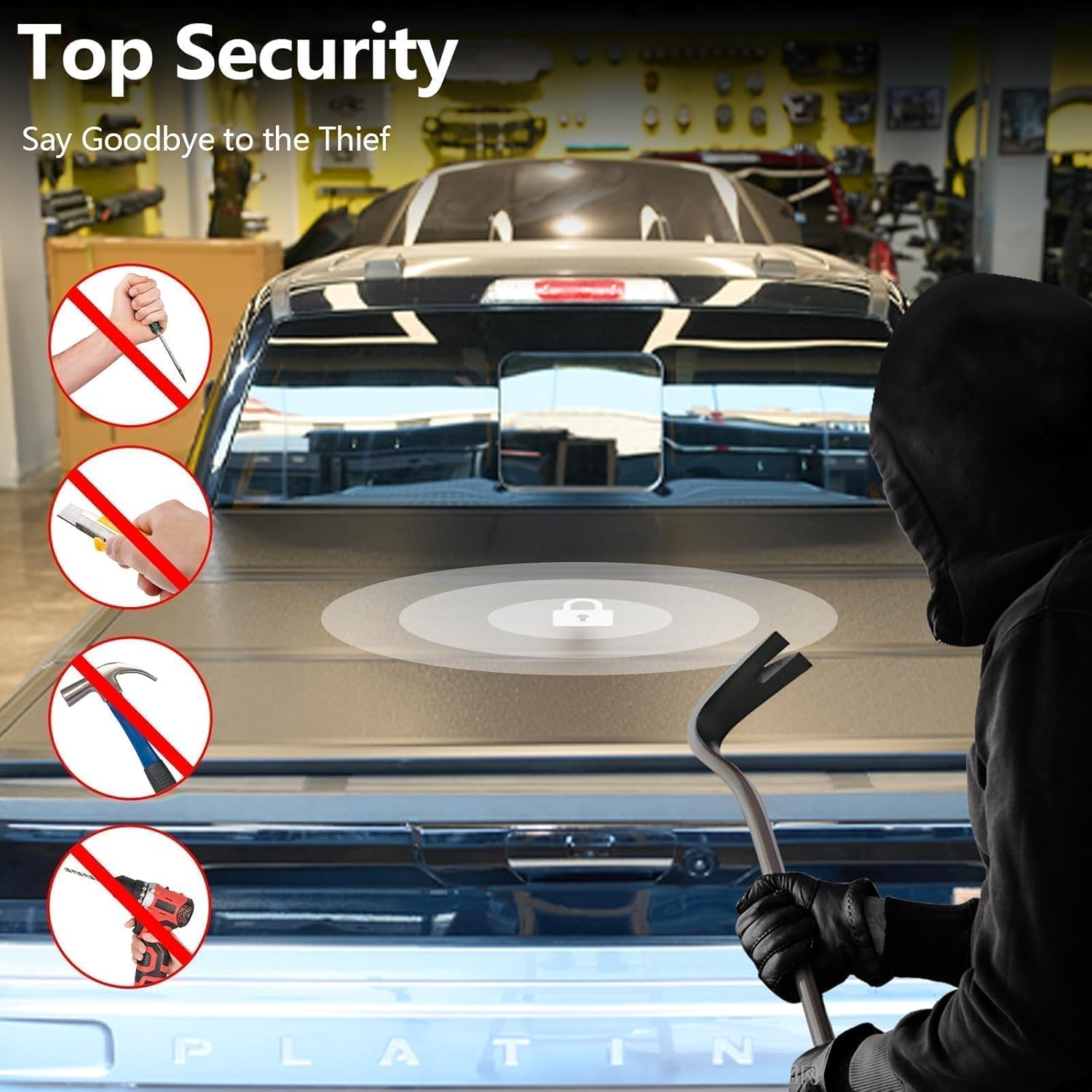 ADVANCED FEATURES: Protect your cargo from the elements & theft with this premium bed cover waterproof snow proof and dirt proof Keeps Truck Bed Dry and Secure.with Sound isolation Energy and heating absorption Enviroment friendly.