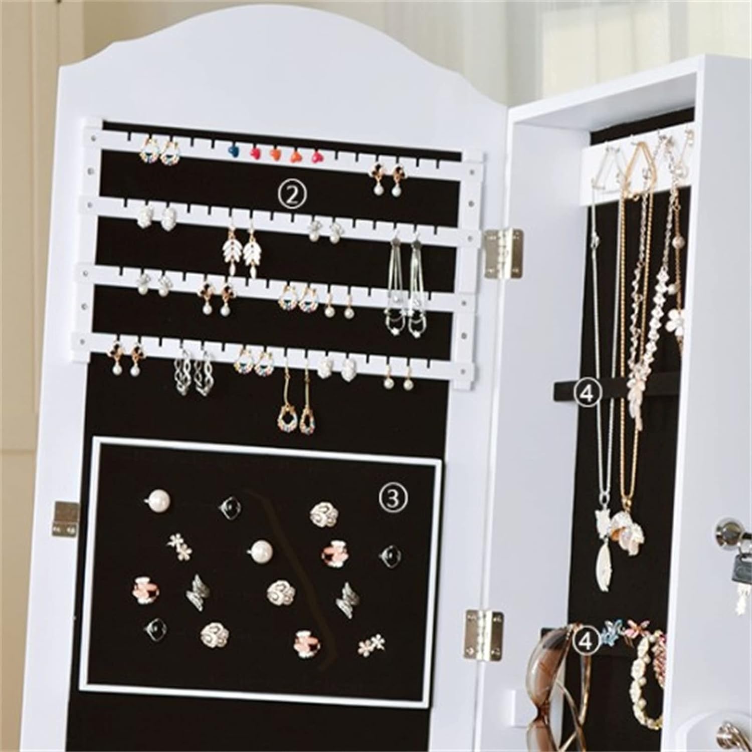 Stunning Hkcvvesign: Our jewellery cabinet mirror with is made to look great wherever you put it,with its crisp finish and large high-quality mirror, it really enhances the look of any room,perfect gift for her.