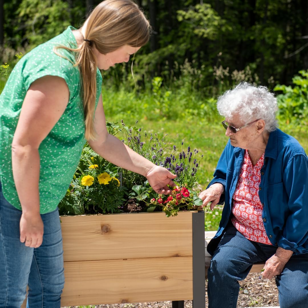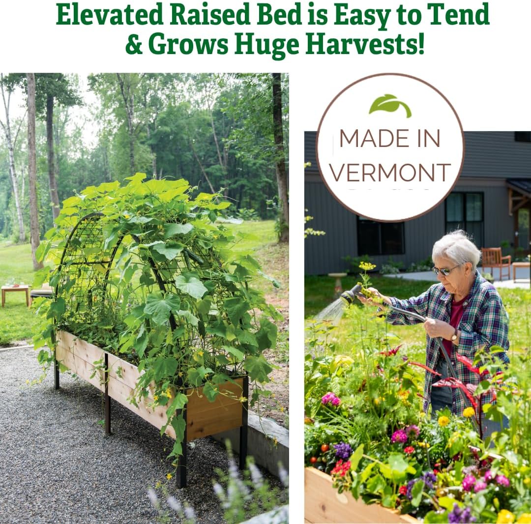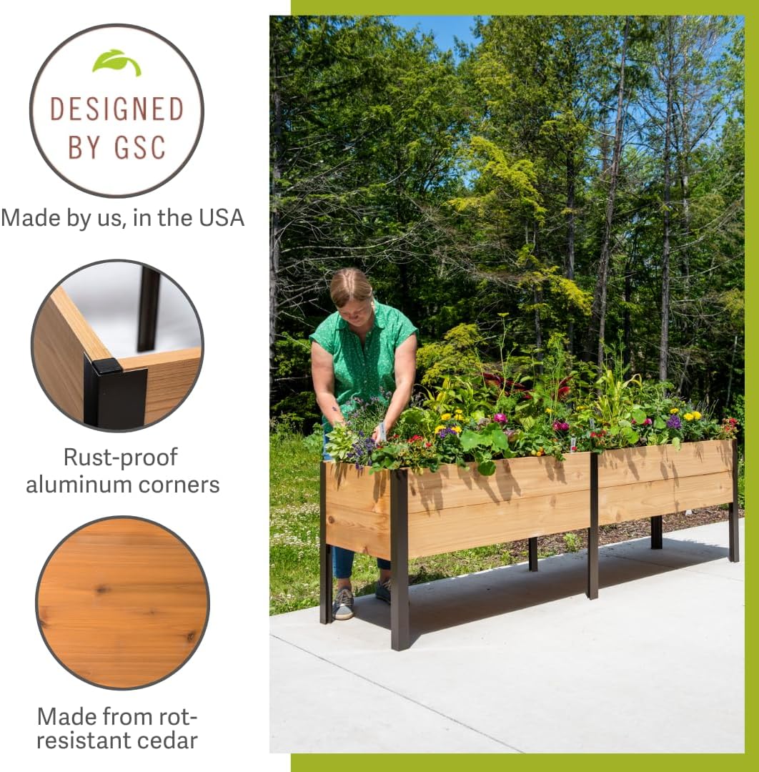 HIGH QUALITY: MADE IN THE USA. Our Heavy Duty Patio Planter Bed is innovatively designed to cater to your gardening needs and solve problems for people with backache/knee pain to easily manage the plants without bending down low with its ergonomic height design. Built with high-quality cedar wood paired with heavy-duty rust-proof metal stand and corner to ensure stability and build to last.