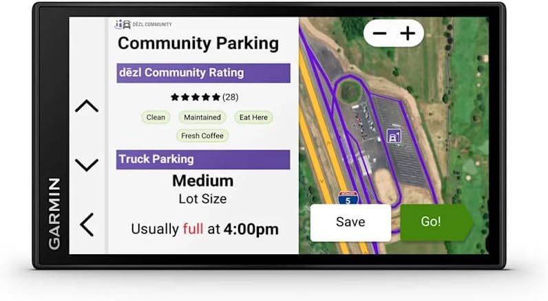 Community-Driven Insights: Benefit from valuable insights shared by the Truck GPS Dezl OTR620 Truck navigation where fellow drivers rate parking loading docks and truck-friendly locations. This feature empowers truckers to make informed decisions about the best places to stop enhancing convenience and safety on long hauls. Ratings and shared experiences create a network of information that helps drivers optimize their routes and stops creating a more efficient driving experience.