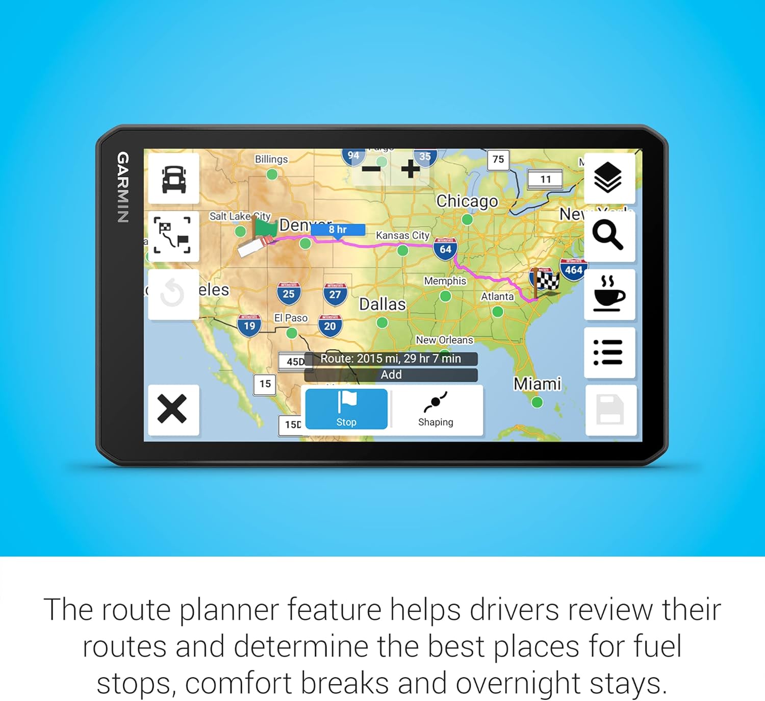 The route planner feature helps drivers review their complete routes and determine the best places for fuel stops comfort breaks and overnight stays