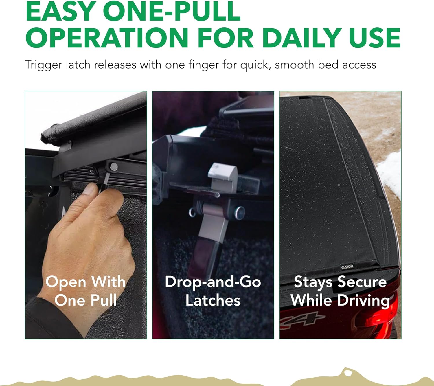 Relentlessly Tight Fit: The exclusive spring-loaded tension control system ensures a no-sag surface and curl-resistant edge keeping the cover flush to the truck bed for a low-profile appearance