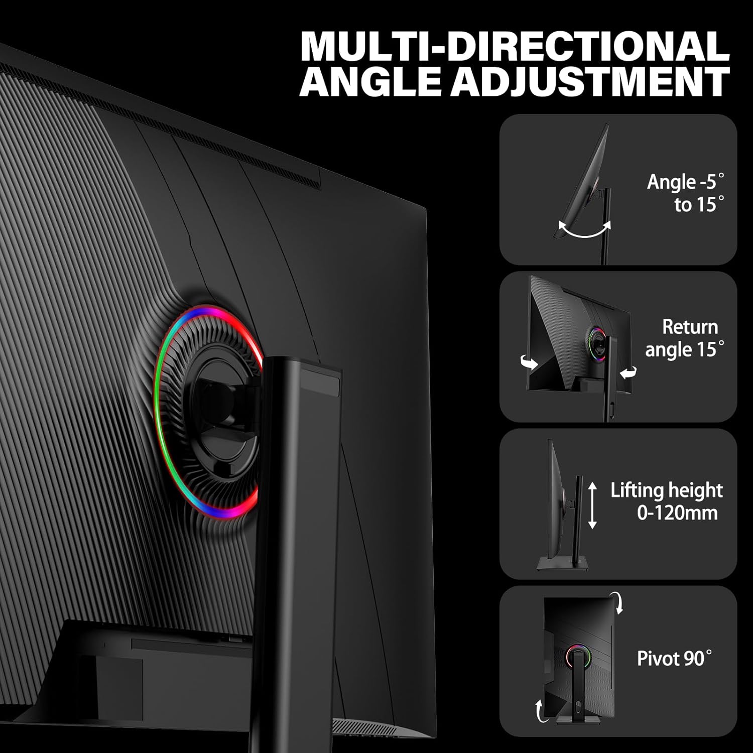 ERGONOMIC DESIGN: Versatile stand supports tilt swivel height adjustment and 90-degree pivot rotation for optimal viewing comfort. If you find any damage malfunction or missing accessories please contact us at anytime.