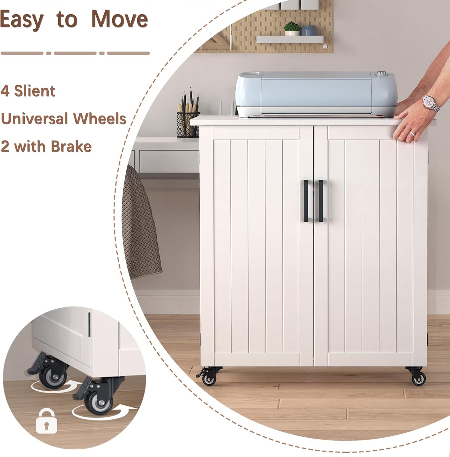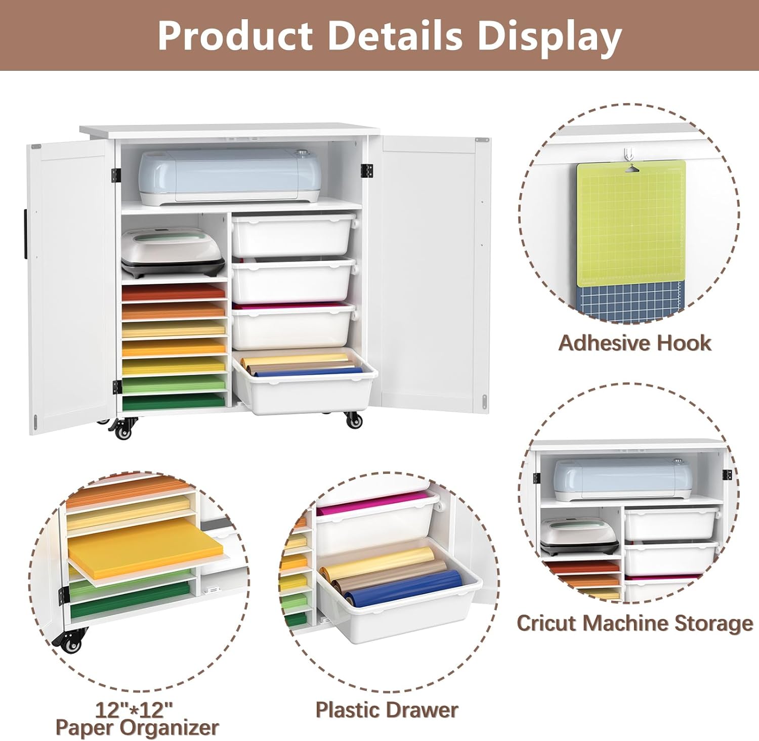 In this age of limitless creativity creators crave an inspirational haven a workspace that fuels their imagination. Enter Craft Storage Cabinet - meticulously designed for you. A Creative Paradise: If you've ever tried your hand at card making collage or T-shirt design you know that these crafts require a plethora of materials and tools. Our storage cabinet provides the perfect solutiona beautiful spacious and well-organized workspace that fulfills the dreams of every crafting enthusiast. Mobile Craft Workstation: Need to move your creative magic to another room? No problem. Our Cricut cart is your ideal rolling craft station. With four universal wheels including two with brakes it glides effortlessly between rooms or locks securely in place. When not in use simply close it up & wheel it to your desired location. When closed it will hide all your clutter and blend seamlessly with your home decor Elevate your craft elevate your space Craft Organization and Storage Cart where functionality meets style. Get ready to create in a unique way staying organized like never before! Let's create together where dreams come to life!