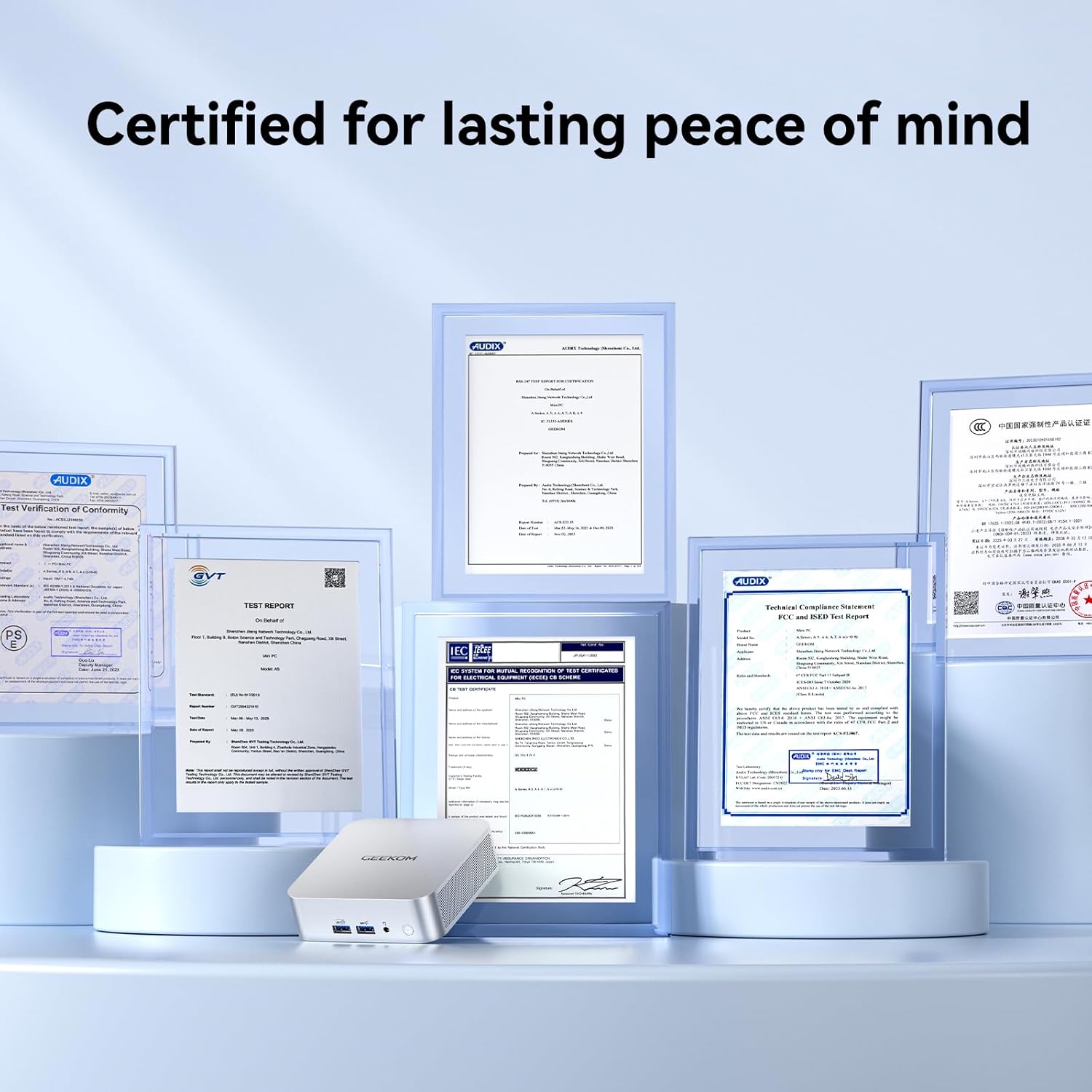 [ + - ] The A5 Pro Mini PC comes with genuine Windows 11 Pro preinstalledready to work right out of the box. While many brands offer only a 1-year warranty backs it with a 3-year limited warranty from the purchase date (covering defects in materials and workmanship) reflecting our confidence in build quality and long-term reliability. Built with premium components and rigorously tested its certified to major international standards including for safe stable efficient performance. Plus you get responsive customer support whenever you need help.