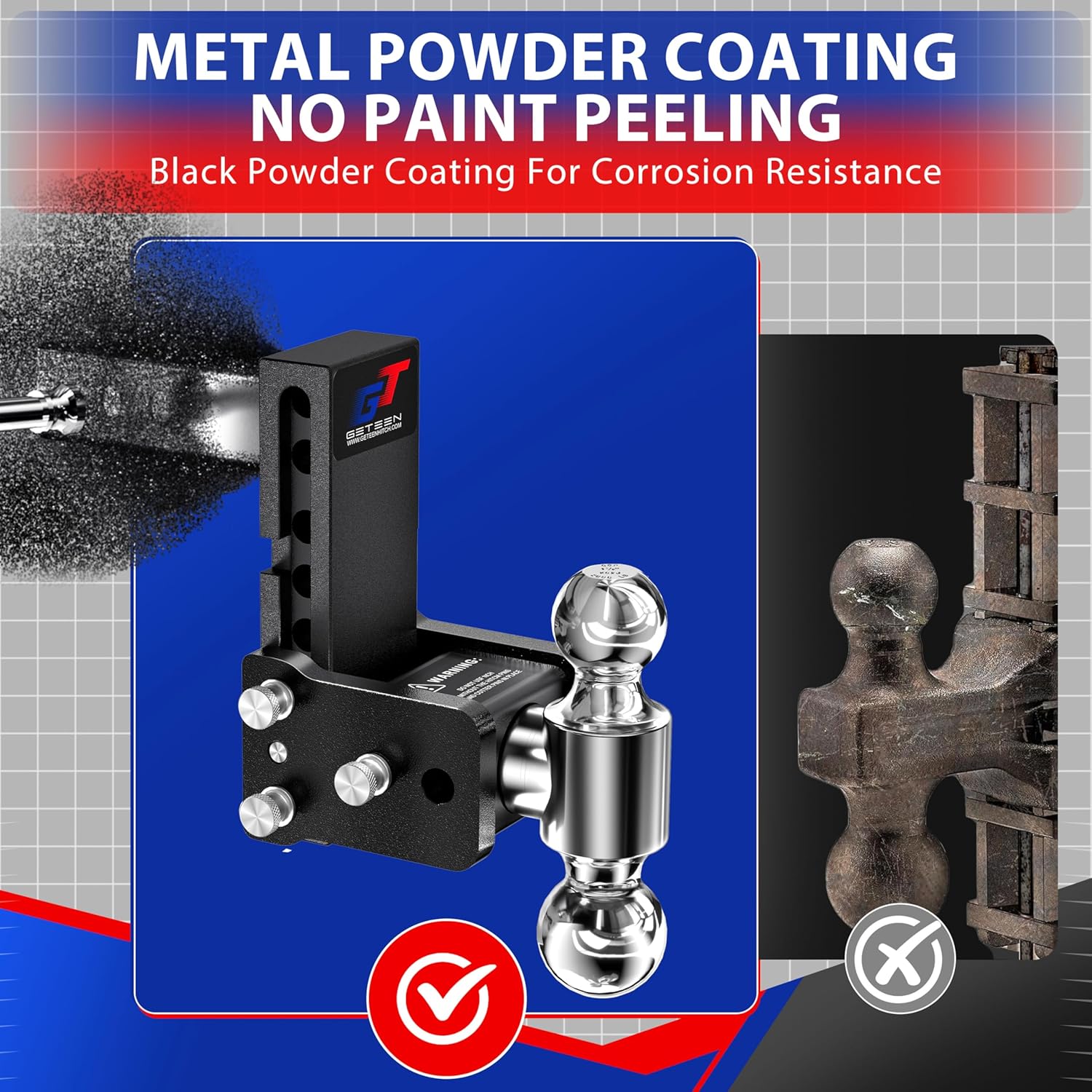 RUGGED & RESILIENT - The Adjustable Ball Mount Trailer Hitch is built to last thanks to its high-strength steel construction and corrosion-resistant finish. Two layers of protectionan e-coat and ironclad black powder coatcreate a durable long-lasting coating that can withstand the toughest conditions. Manufactured to haul equipment to the jobsite all week and launch the boat each weekend the hitch was made to be as hardworking and versatile as you are.