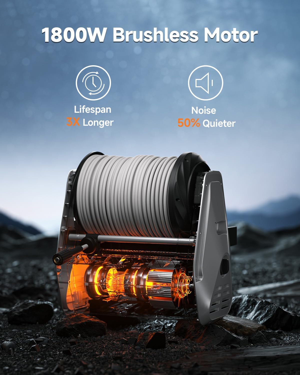 Long-lasting Brushless Motor: Library-quiet operation at industrial power! Advanced brushless technology reduces noise by 42% (68dB) while extending motor life to 1000+ hours. The graphene cooling system maintains optimal temperature even during 4-hour continuous use. Wash at dawn without neighbor complaints this might be the last pressure washer youll ever buy.
