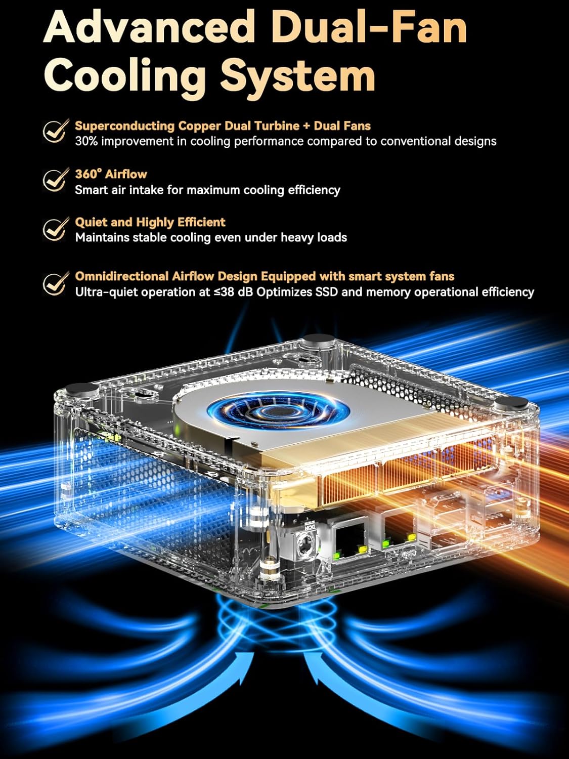 16GB DDR5 RAM & 1TB PCIe SSD - Installed with DDR5 16GB RAM SO-DIMM Dual Channel (2x8GB) the Nucbox M6 Ultra mini pc support expansion to 128GB RAM. Featured with 1TB M.2 2280 PCIe 3.0 SSD support dual slot expansion to PCIe 4.0 8TB SSD. (Upgrades not included)