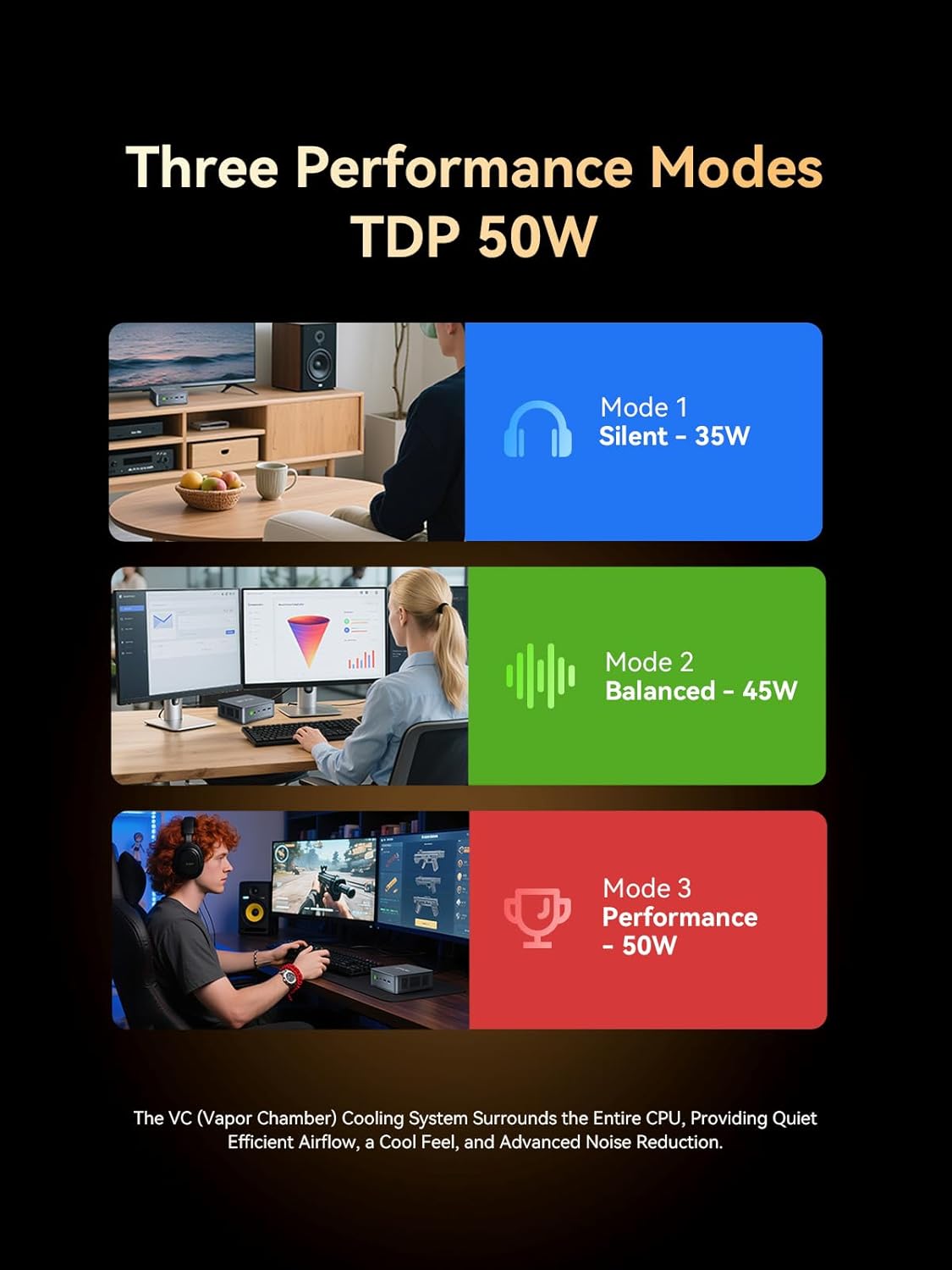 GAMING PC - The Radeon 760M iGPU has 8 CUs (512 shaders) running at up to 2 600 MHz. This desktop computer can play moderate gaming at a steady FPS it also HW-encodes and HW-decodes the most widely used video codecs such as AV1 HEVC and AVC.