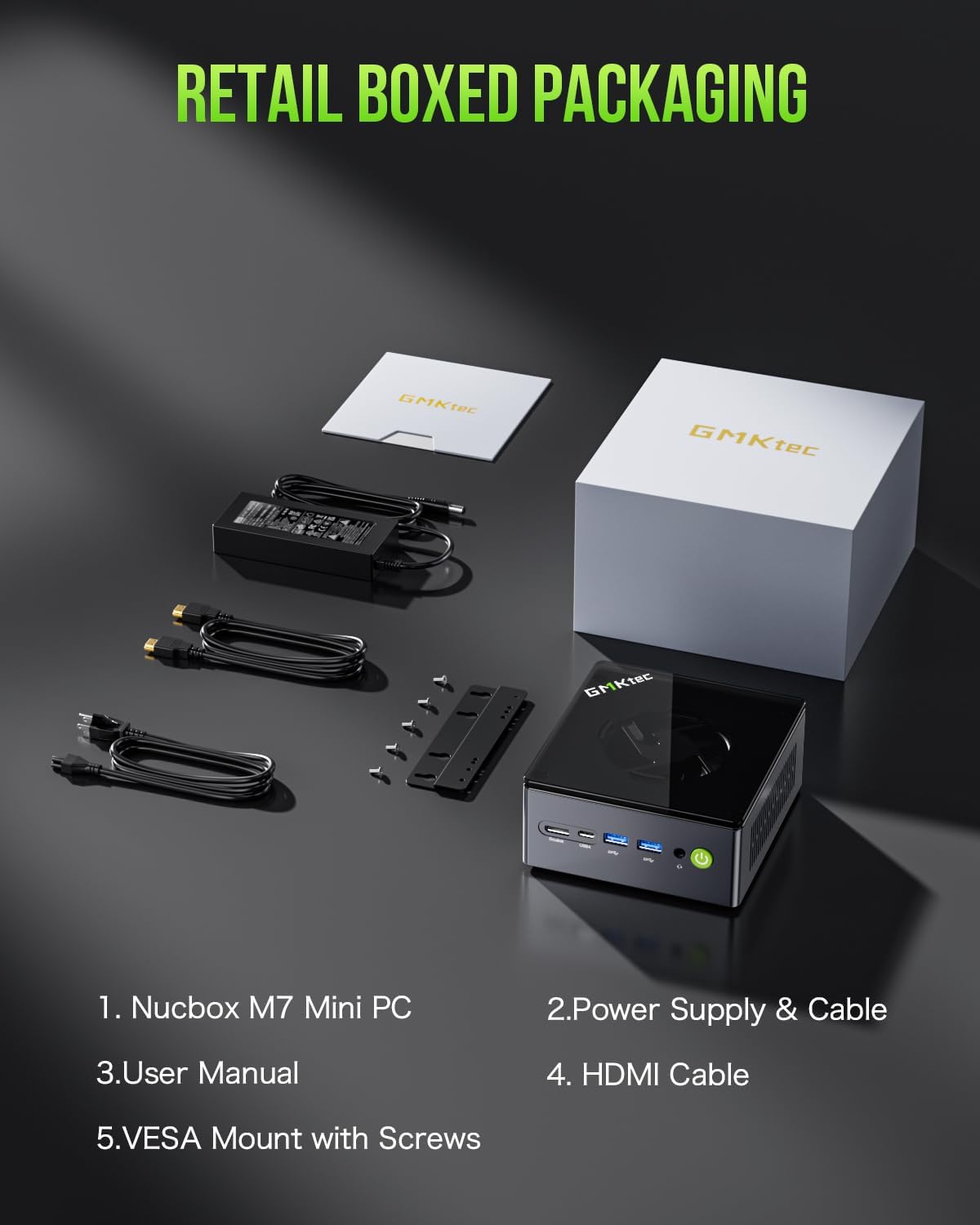 32GB DDR5 Dual Channel RAM & 512GB PCIe SSD Dual Slot ExpansionInstalled with DDR5 32GB RAM 4800MHz (Dual Channel 2x16B) the Nucbox M7 mini pc support expansion to 128GB RAM. Featured with 512GB M.2 2280 PCIe 3.0 SSD supports dual slot expansion to 2*PCIe 4.0 2TB SSD up to 4TB. (Upgrades not included)