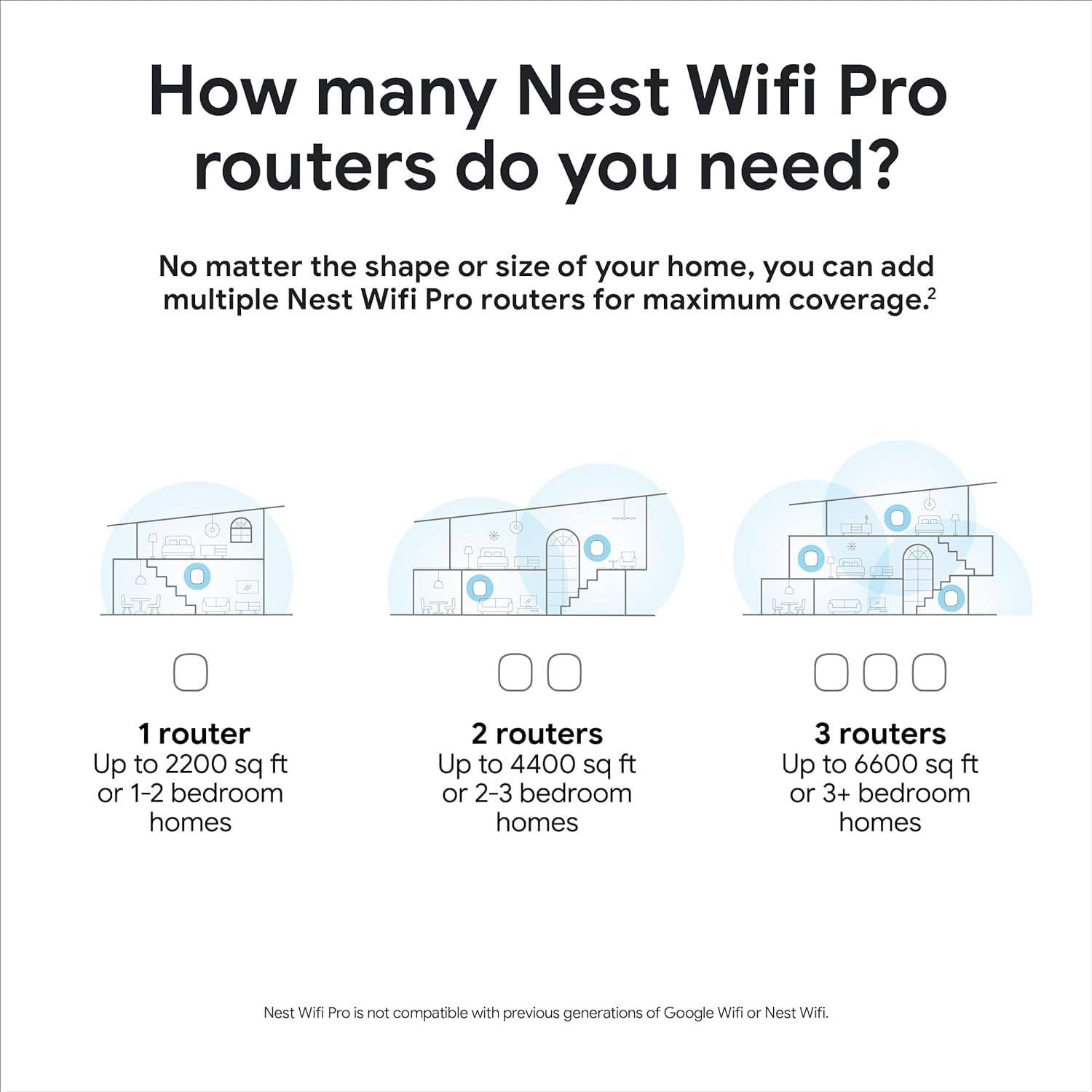 Nest Wifi Pro uses the latest most advanced Wi-Fi 6E technology[3] so it isnt compatible with previous generations of Wifi or Nest Wifi