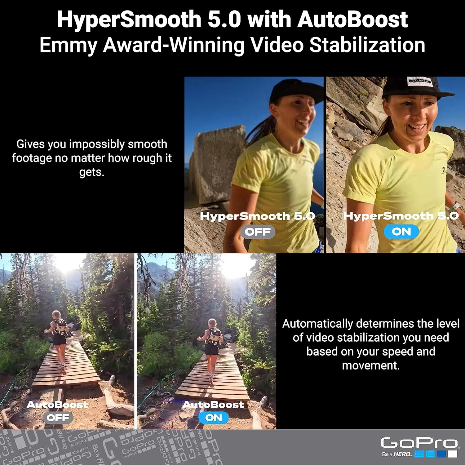 Emmy Award-Winning HyperSmooth Stabilization: HyperSmooth has never been better winning an Emmy in 2021 for its In-Camera Sensor and Software Stabilization. HyperSmooth 5.0 raises the bar with Horizon Lock improved stabilization for 4:3 aspect ratio footage thanks to our new image sensor and AutoBoost for maximum stabilization with minimal image cropping.