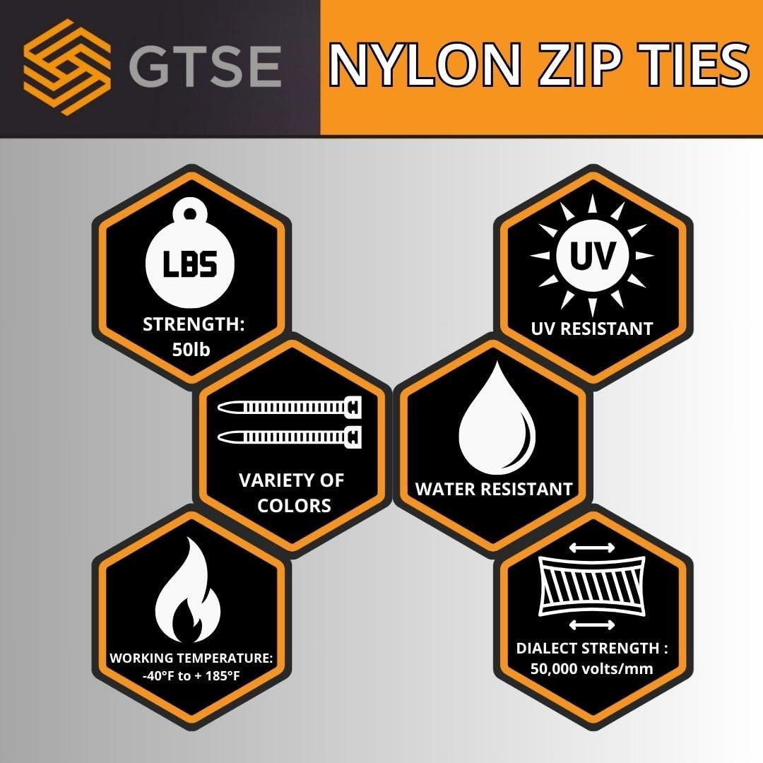 BUILT TO LAST: Made of industrial strength nylon 6/6 zip ties are able to withstand even the toughest weather conditions (working temperature -40F to +185F). Each zip tie features a durable self-locking mechanism which doesn't falter over time.
