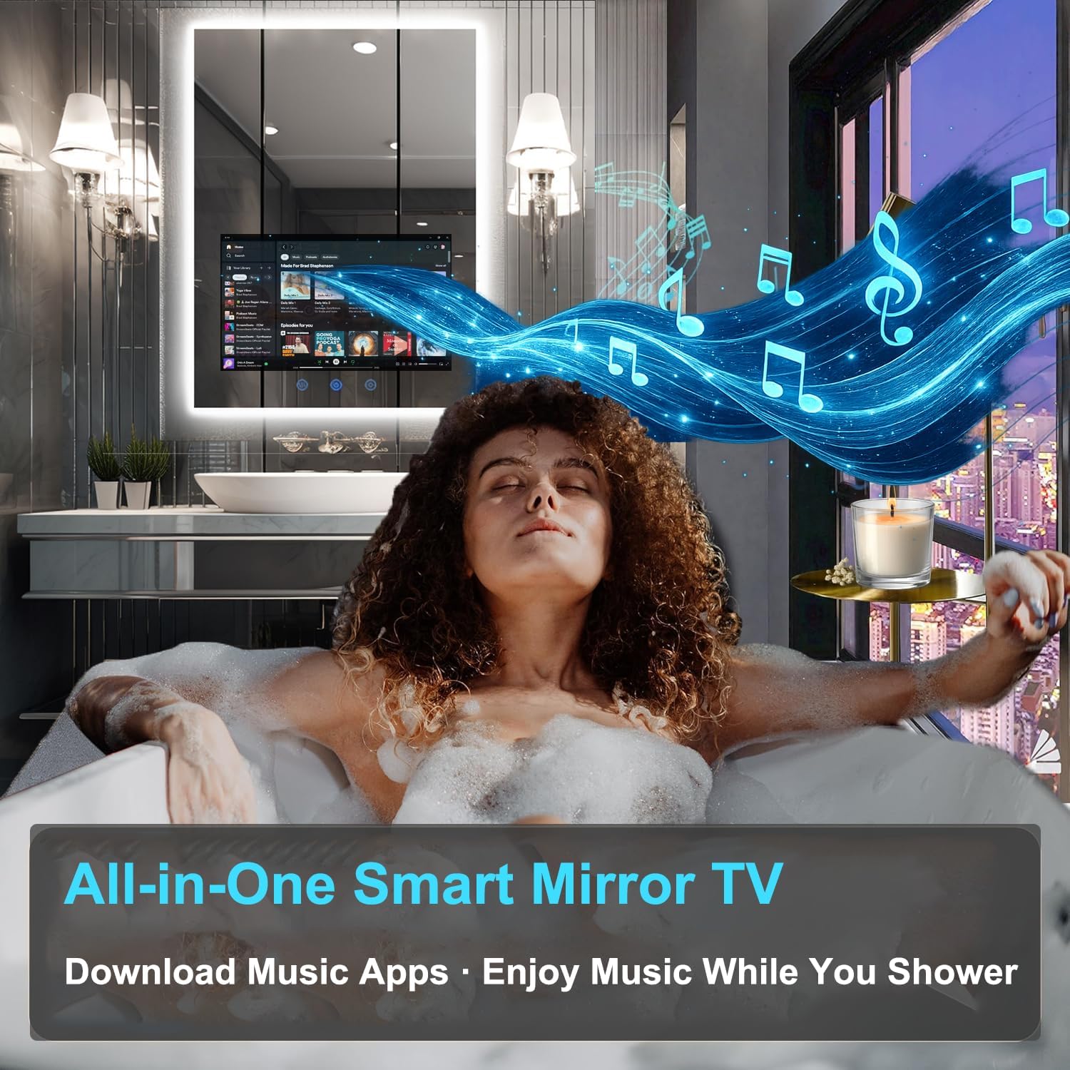 IP66 Waterproof Protection | Safe 12V Power | Rich Connectivity: Built with professional-grade IP66 waterproof sealing and safe 12V low-voltage power for long-term reliability. Supports Wi-Fi Bluetooth HHkcvvMI and USB giving you multiple ways to connect devices and enjoy your smart mirror experience.