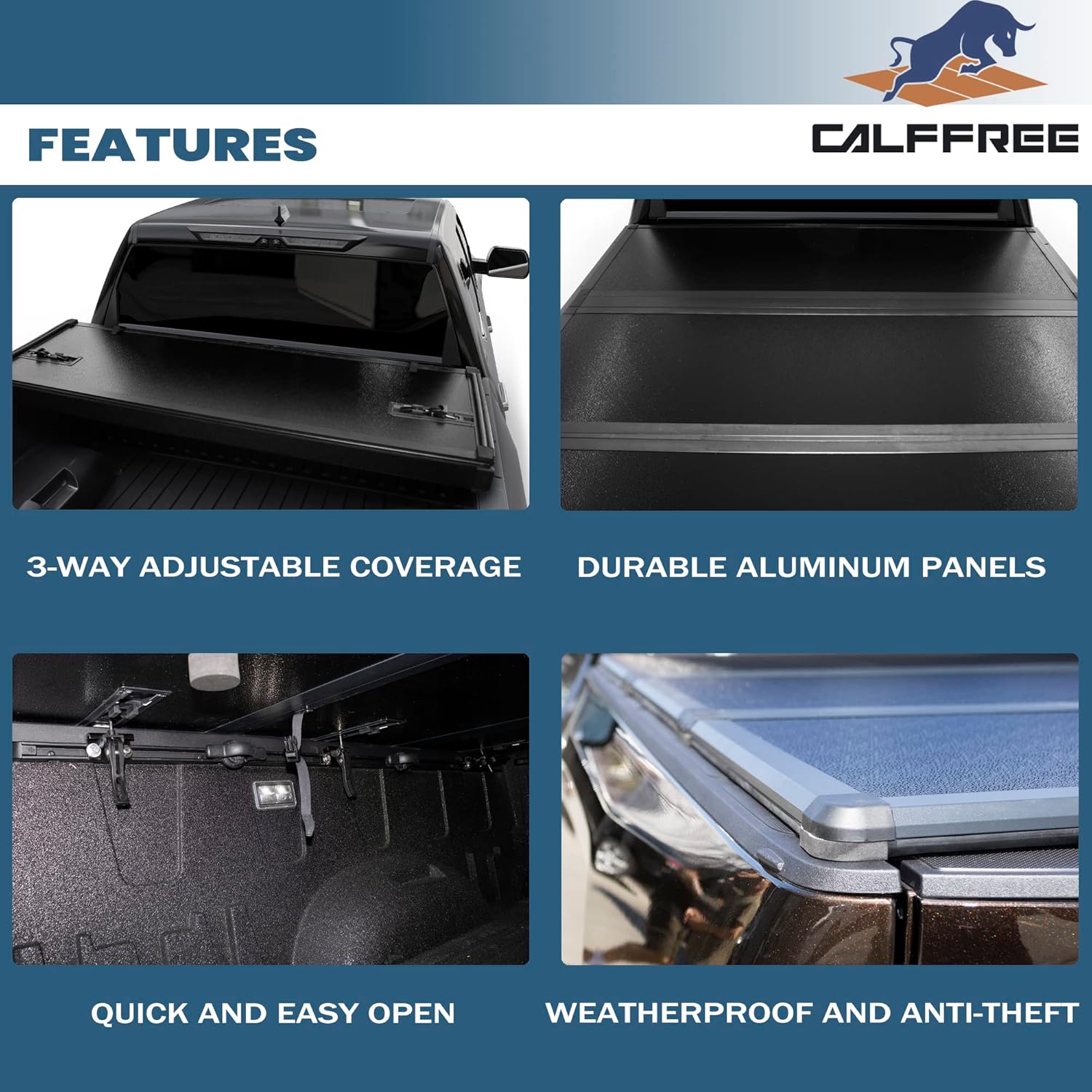 Higher quality & Cargo security - The hard fold design of this tonneau cover is made of Professional FRP & aluminum panels and internal honeycomb structure support rated to hold up to 400 lbs provides added security for your cargo helping to prevent theft and damage.