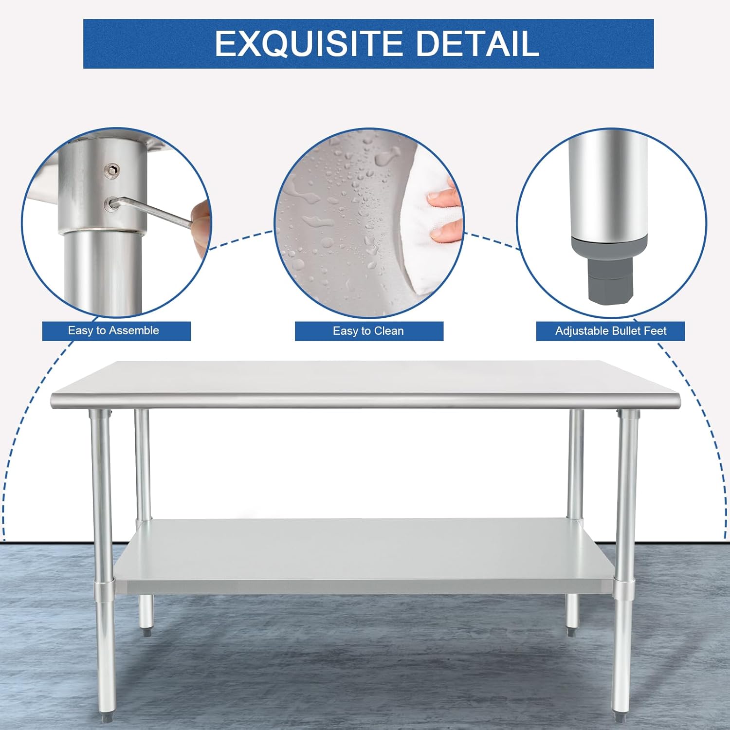 VERSATILE USAGE- Due to the strength and durability our stainless steel prep table can be widely used in commercial kitchens restaurants laboratories workshops garages outdoors.