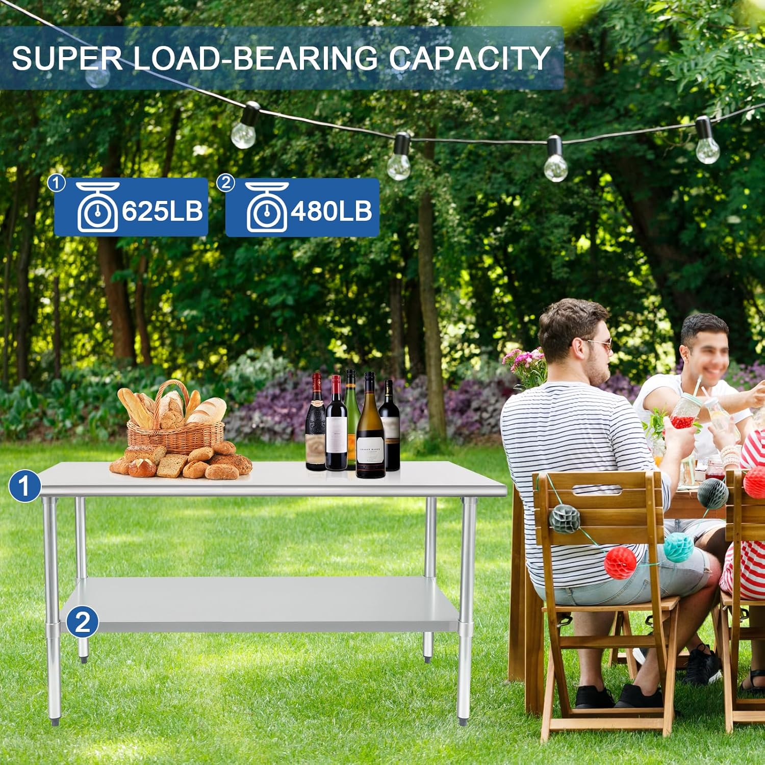 LARGE STORAGE SPACE- The 30 x 60 inches dimension provides an ample space for commercial kitchen. The top shelf has a weight capacity of 625 lb and the undershelf has a weight capacity of 480 lb this unit is sturdy and utilitarian enough for food prep such as store microwave oven air fryer etc.