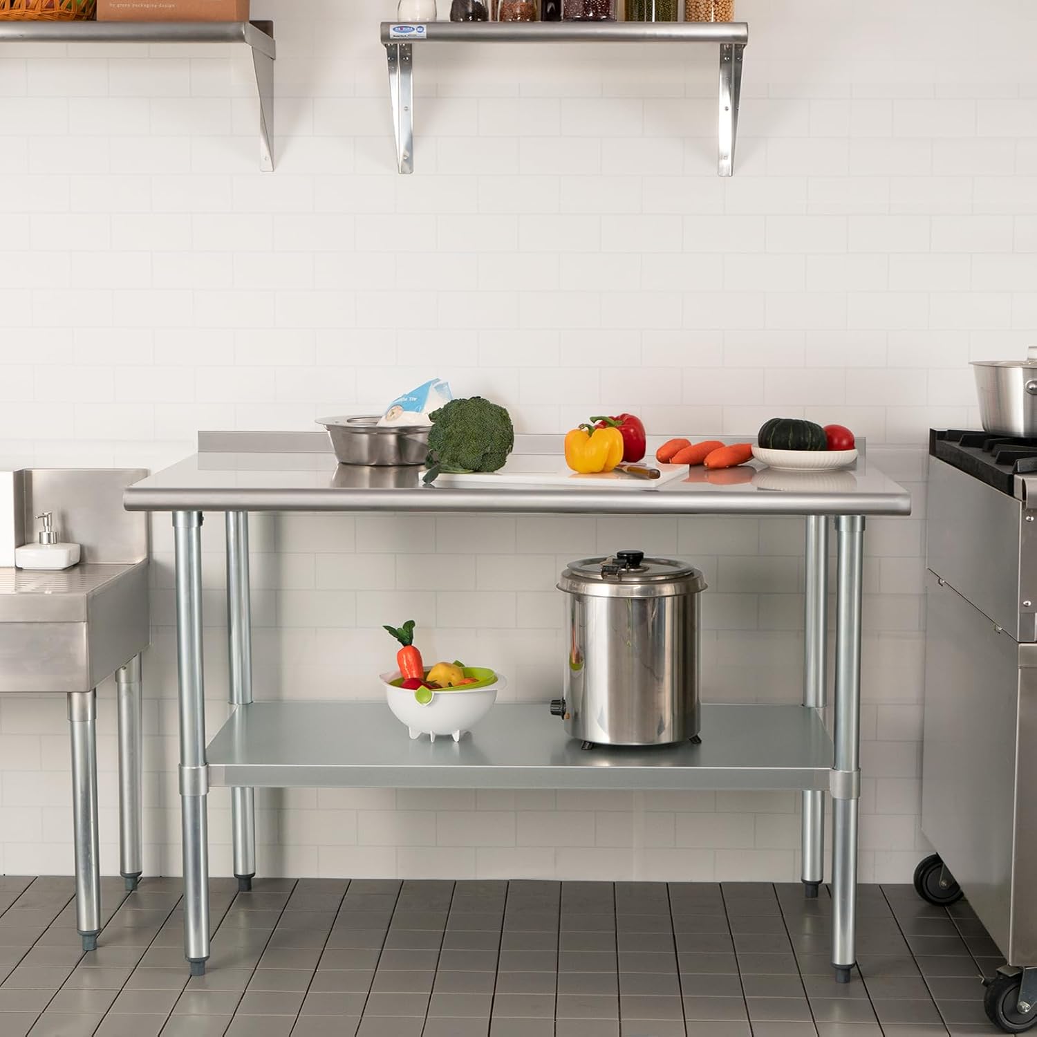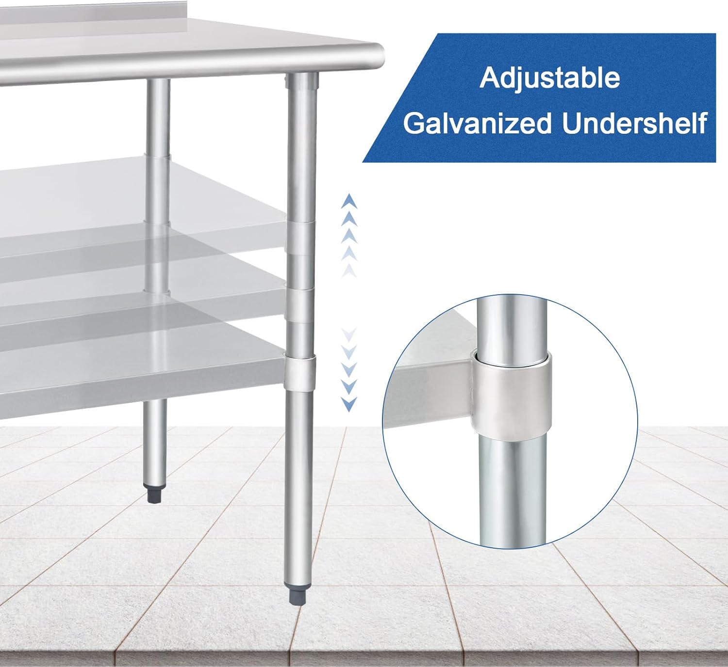 ADJUSTABLE UNDERSHELF- The adjustable galvanized undershelf and 4 galvanized steel legs offer additional storage capacity. You can put pots pans kitchen utensils small appliances on it. Keep your workspace organized. You can set the shelf at different heights according to your needs it is easy to access.