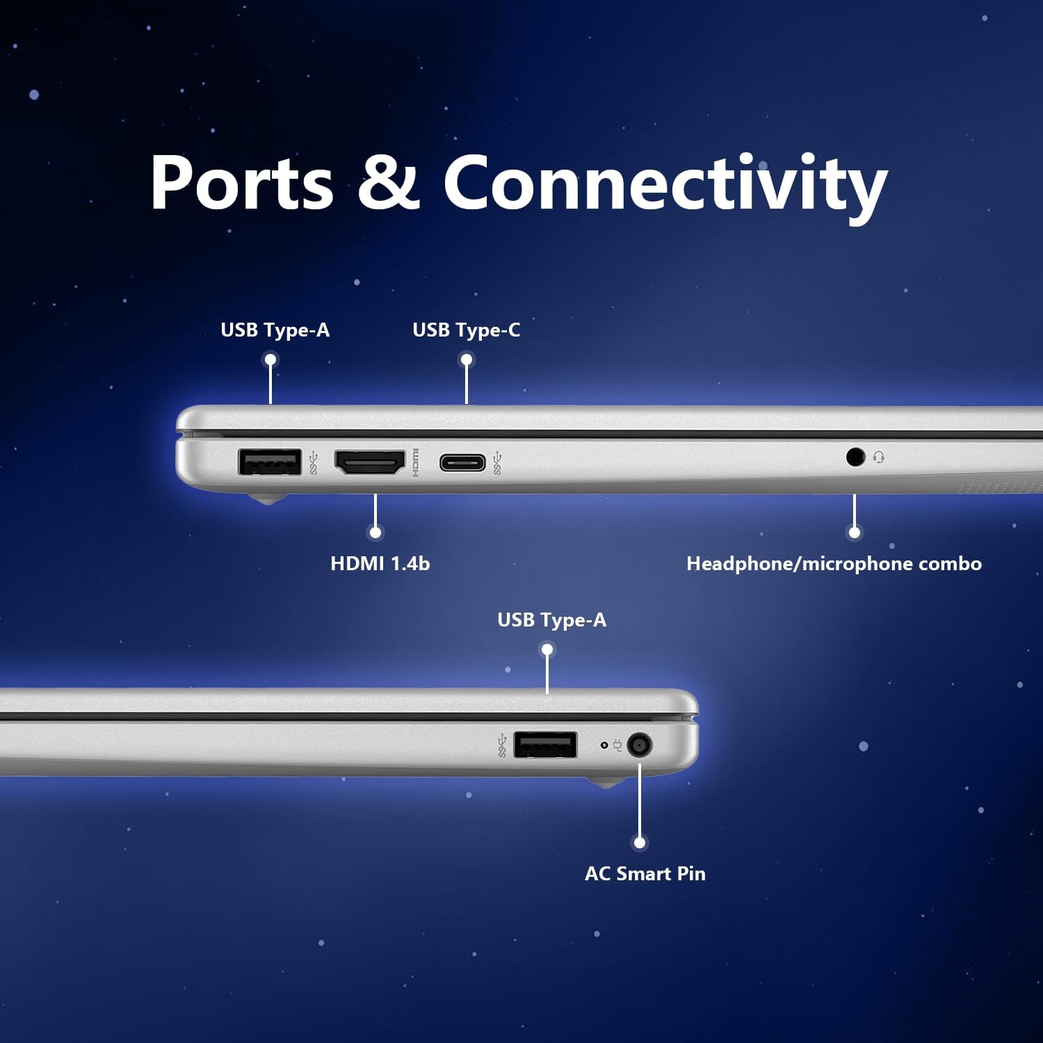 Modern Connectivity with Wi-Fi 6 & Essential Ports Stay productive with Wi-Fi 6 Bluetooth and multiple physical ports for flexible connections: 1 USB-C 2 USB-A 1 HDMI and 1 headphone/mic combo jack (3.5mm). Designed to support external monitors accessories and conference setups with ease.