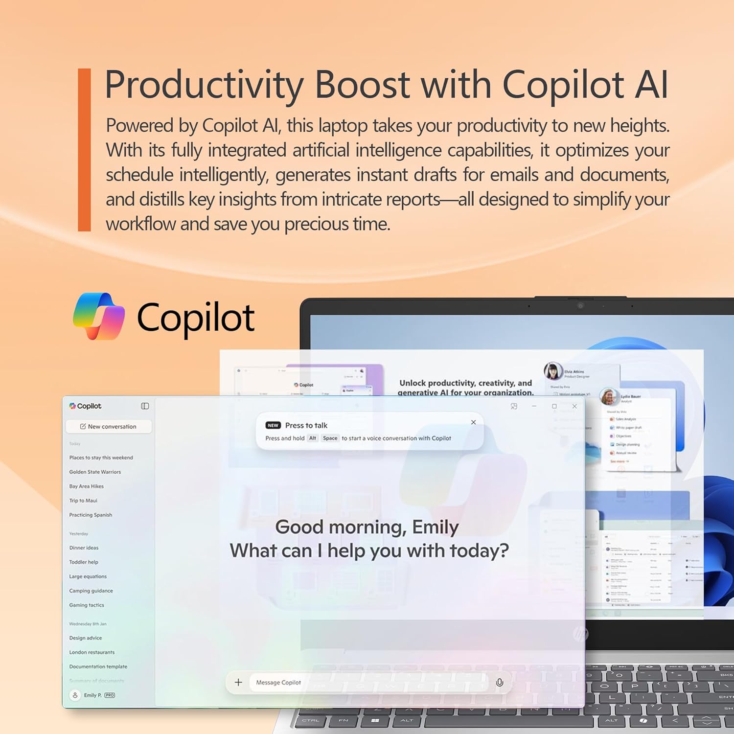 A refined laptop designed for everyday work study and home usepowered by Windows 11 with Copilot for a smooth intelligent experience.